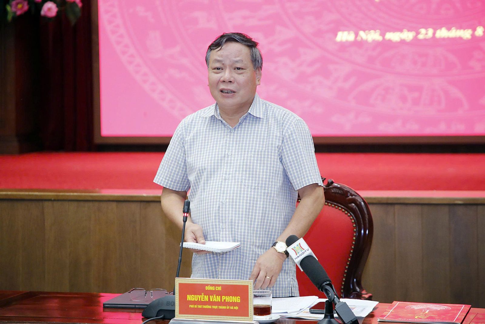 Phó Bí thư Thường trực Thành ủy Hà Nội Nguyễn Văn Phong phát biểu trao đổi, chỉ đạo tại hội nghị.