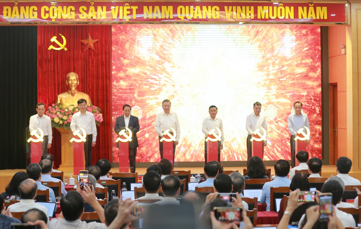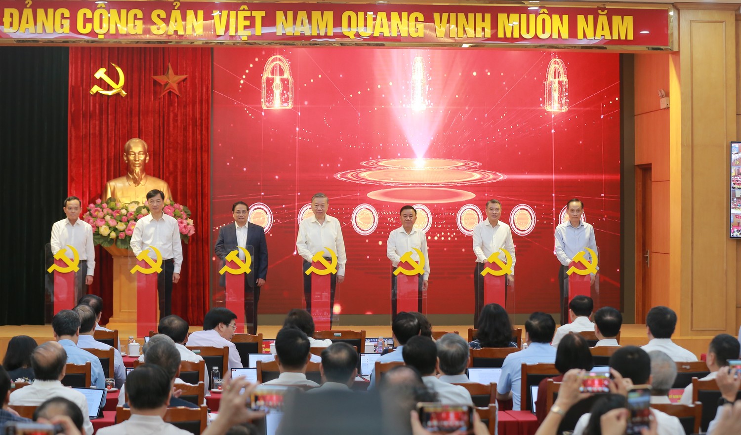 Tham dự còn có các đồng chí Ủy viên Bộ Chính trị, Bí thư Trung ương Đảng, Ủy viên Trung ương Đảng, lãnh đạo các Ban, bộ, ngành, địa phương.