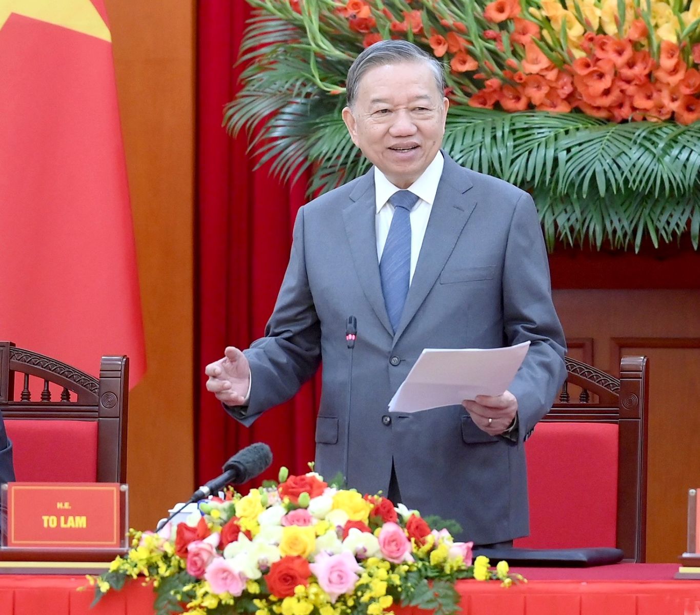 Tổng Bí thư mong muốn cộng đồng các nhà Việt Nam học tiếp tục đồng hành với Việt Nam không chỉ bằng tình cảm mà bằng tri thức khoa học, bằng phân tích chính sách dựa trên chứng cứ khoa học, bằng khuyến nghị cụ thể, thiết thực, có thể triển khai được. Tổng Bí thư mong muốn các nghiên cứu về Việt Nam sẽ ngày càng gắn với các vấn đề đang đặt ra một cách cấp bách: già hóa dân số; phát triển y tế cơ sở và an sinh xã hội toàn diện; bảo đảm an ninh năng lượng trong điều kiện cam kết giảm phát thải; bảo vệ chủ quyền số và bản sắc văn hóa trong không gian số; làm thế nào để trí tuệ nhân tạo và tự động hóa phục vụ phát triển con người chứ không loại bỏ con người.