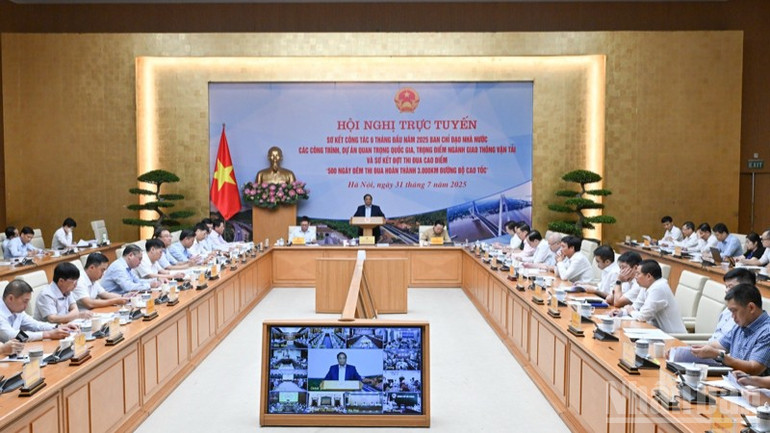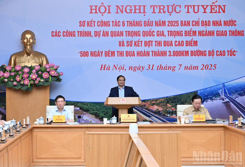 Sáng 31/7, tại Trụ sở Chính phủ, Thủ tướng Phạm Minh Chính chủ trì Hội nghị trực tuyến sơ kết công tác 6 tháng đầu năm 2025 của Ban Chỉ đạo Nhà nước các công trình, dự án quan trọng quốc gia, trọng điểm ngành giao thông vận tải và sơ kết đợt thi đua cao điểm “500 ngày đêm thi đua hoàn thành 3.000km đường bộ cao tốc".