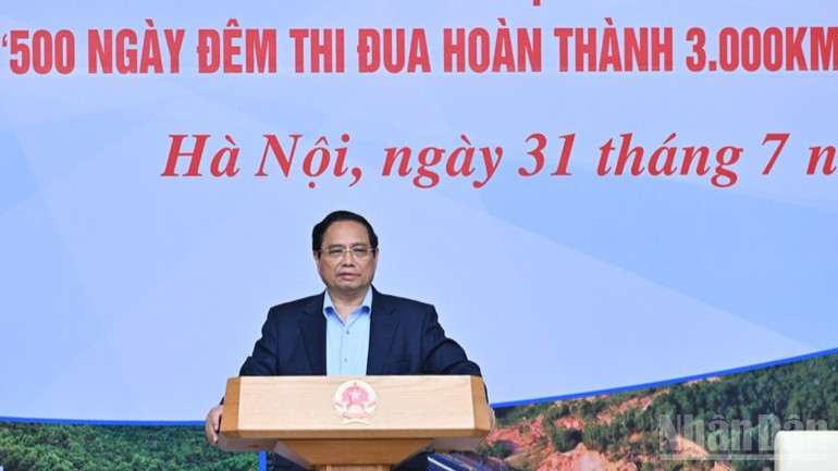 Thủ tướng nhấn mạnh mục tiêu dứt khoát phải hoàn thành 3.000 km đường cao tốc từ nay đến năm 2025, là mục tiêu Đại hội lần thứ XIII của Đảng đã đề ra. Với ý nghĩa quan trọng đó, chúng ta phải xem đây là mệnh lệnh của trái tim, tinh thần trách nhiệm cao nhất với tinh thần, khí thế sôi nổi hướng tới kỷ niệm 80 năm Cách mạng Tháng Tám, đã quyết tâm rồi phải quyết tâm cao hơn, nỗ lực rồi phải nỗ lực lớn hơn, đã hiệu quả rồi thì hiệu quả hơn nữa; các chủ thể liên quan tập trung làm, tinh thần "chỉ bàn làm, không bàn lùi", làm tốt hơn.