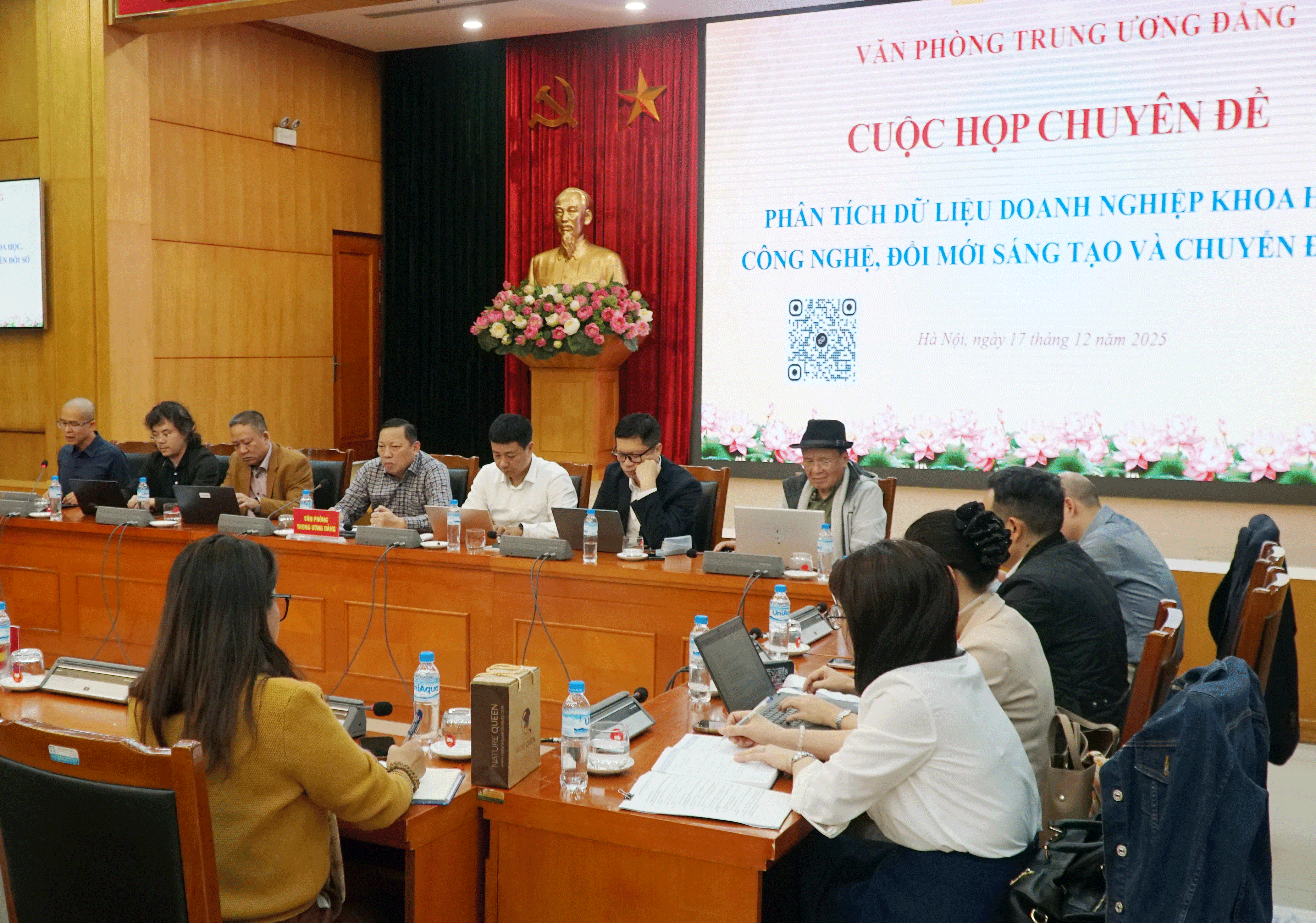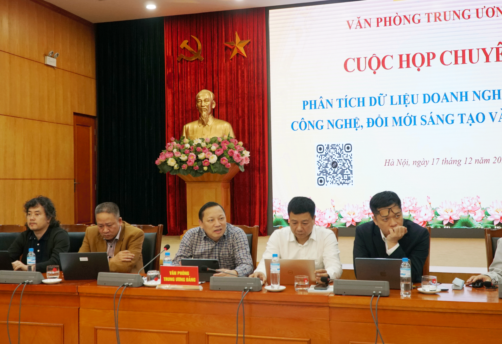 (ĐCSVN) – Chiều 17/12, Tổ giúp việc Ban Chỉ đạo Trung ương về phát triển khoa học, công nghệ, đổi mới sáng tạo và chuyển đổi số tổ chức Cuộc họp chuyên đề phân tích dữ liệu doanh nghiệp khoa học, công nghệ, đổi mới sáng tạo và chuyển đổi số với sự tham dự của đại diện một số cơ quan thuộc các bộ Tài chính, Công Thương, Khoa học và Công nghệ.