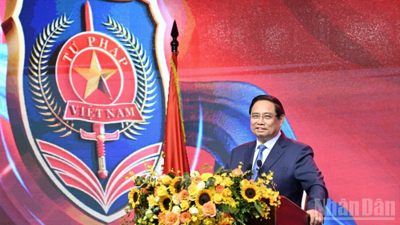 Thủ tướng nêu rõ, Chủ tịch Hồ Chí Minh từng nhấn mạnh: “Xã hội luôn luôn biến đổi, tiến lên mãi không bao giờ thụt lùi. Luật pháp cũng tiến lên mãi không thụt lùi. Đó là quy luật”. Trong bối cảnh đất nước ta đang bước vào kỷ nguyên mới, sứ mệnh của ngành tư pháp là không ngừng hoàn thiện hệ thống pháp luật Việt Nam dân chủ, công bằng, hiện đại, đồng bộ, thực chất, vì nhân dân phục vụ, tiệm cận chuẩn mực, thông lệ quốc tế, được thực hiện nghiêm minh, nhất quán, công khai, minh bạch.