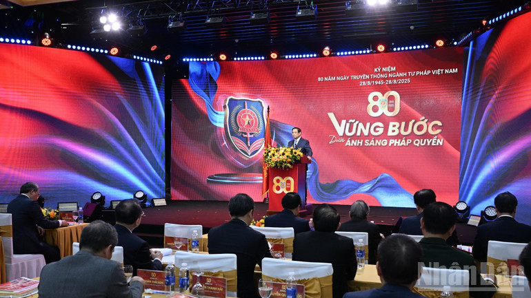Sáng 25/8, tại Hà Nội, Thủ tướng Chính phủ Phạm Minh Chính dự Lễ kỷ niệm 80 năm Ngày truyền thống ngành tư pháp (28/8/1945-28/8/2025) và Đại hội thi đua yêu nước ngành tư pháp lần thứ VI. Cùng dự có Phó Thủ tướng Chính phủ Lê Thành Long; Phó Chủ tịch Quốc hội Nguyễn Khắc Định; Bộ trưởng Tư pháp Lào Phayvy Siboualypha.