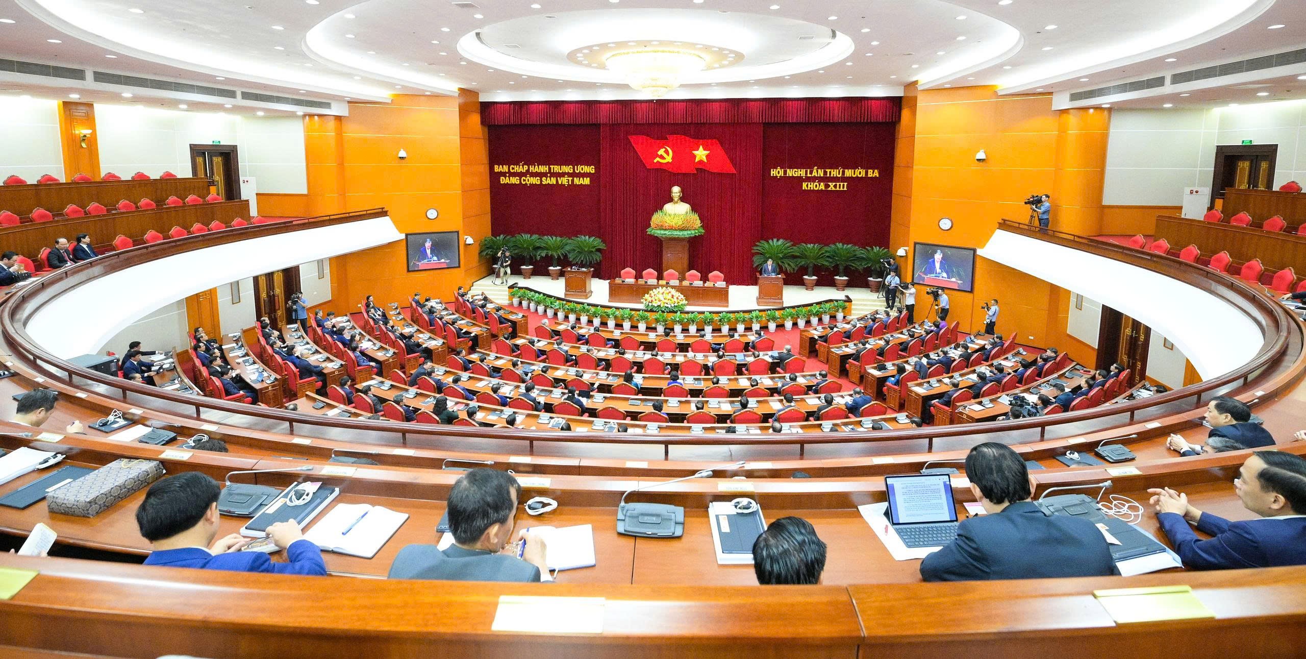 Trung ương thảo luận, cho ý kiến về các nội dung trên và thông qua Nghị quyết Hội nghị Trung ương 13. Đồng chí Tổng Bí thư Tô Lâm phát biểu bế mạc Hội nghị.