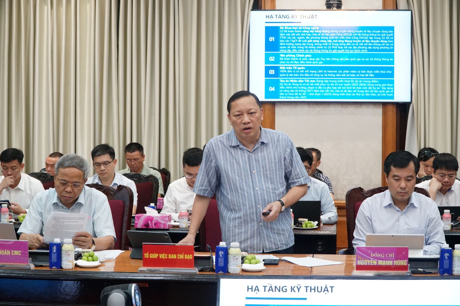 Tại cuộc họp, đồng chí Ngô Hải Phan, Cục trưởng Cục Chuyển đổi số - Cơ yếu, Văn phòng Trung ương Đảng, Tổ phó Thường trực Tổ Giúp việc Ban Chỉ đạo Trung ương về phát triển khoa học công nghệ, đổi mới sáng tạo và chuyển đổi số đã báo cáo về Tình hình triển khai Kế hoạch số 02-KH/BCĐTW. Theo đó, Ban Chỉ đạo Trung ương đã giao tổng số 91 nhiệm vụ cho 78 cơ quan (38 cơ quan Trung ương, 34 tỉnh, thành và 9 doanh nghiệp); đến hết ngày 05/8/2025, có 47 nhiệm vụ đã hoàn thành (trong đó có 31 nhiệm vụ hoàn thành đúng hạn); 36 nhiệm vụ đang thực hiện và 08 nhiệm vụ chưa hoàn thành; có 23/78 cơ quan có nhiệm vụ quá hạn chưa hoàn thành.