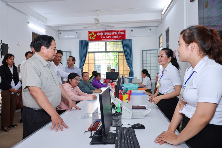 Ngày 21/7, trong chương trình công tác tại một số địa phương ĐBSCL, Thủ tướng Phạm Minh Chính đã tới thăm, kiểm tra việc sắp xếp, tổ chức bộ máy, đơn vị hành chính, vận hành chính quyền địa phương 2 cấp, hoạt động của các trung tâm phục vụ hành chính công, phục vụ người dân và doanh nghiệp tại phường Thới Sơn, tỉnh An Giang (phường biên giới) và xã Mỹ Hiệp, tỉnh Đồng Tháp.