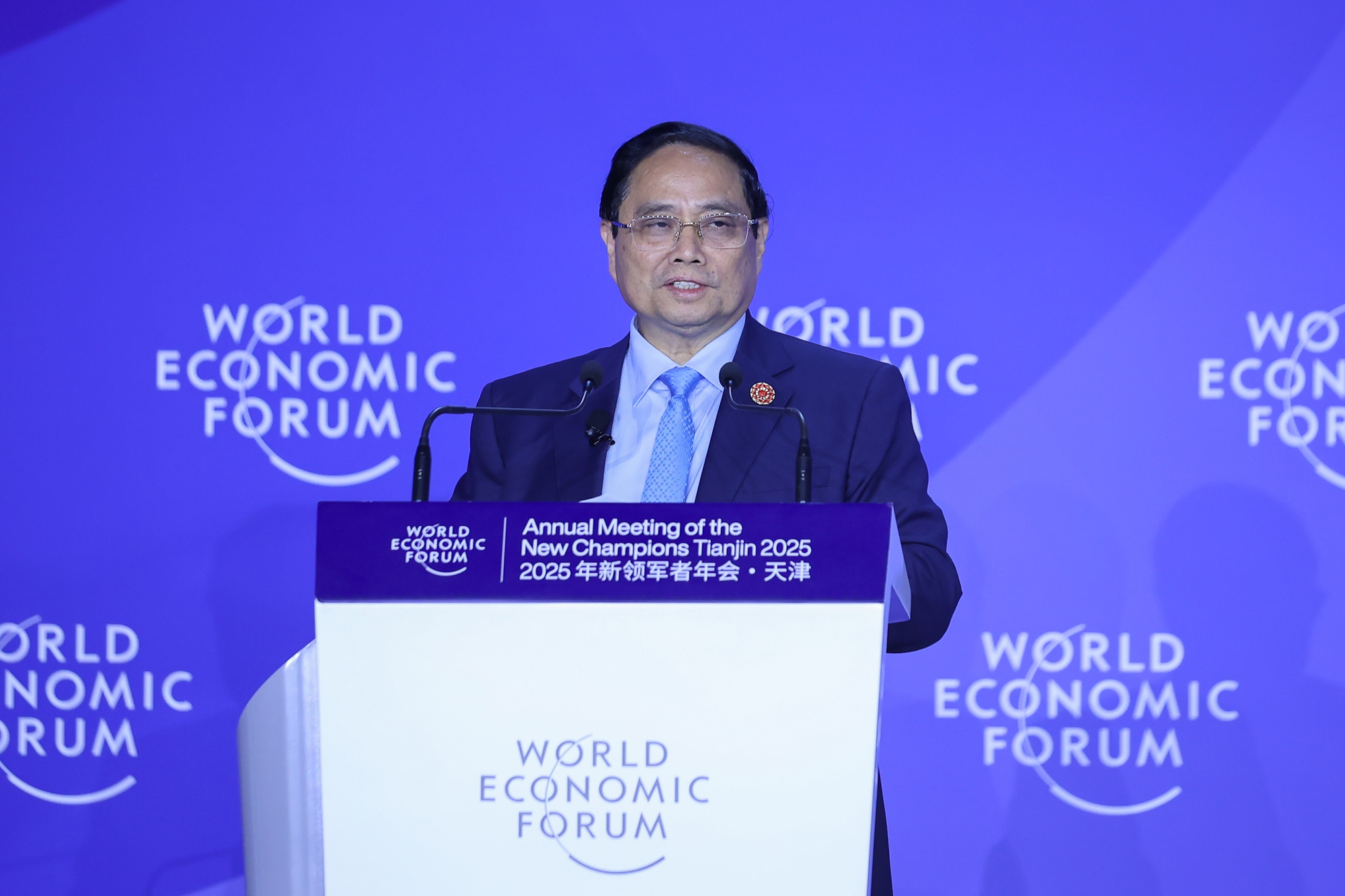 Chiều 25/6, tại thành phố Thiên Tân, Trung Quốc, trong khuôn khổ chương trình tham dự Hội nghị thường niên các nhà tiên phong lần thứ 16 của Diễn đàn Kinh tế Thế giới (Hội nghị WEF Thiên Tân), Thủ tướng Chính phủ Phạm Minh Chính đã phát biểu khai mạc và là diễn giả chính tại phiên thảo luận "Thế kỷ của châu Á có đang gặp thách thức?".
