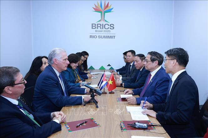 Trong khuôn khổ dự Hội nghị Thượng đỉnh BRICS Rio de Janeiro, Brazil, chiêu ngày 6/7 (giờ địa phương), Thủ tướng Chính phủ Phạm Minh Chính đã hội kiến với Bí thư thứ nhất, Chủ tịch nước Cuba Miguel Diaz Canel.