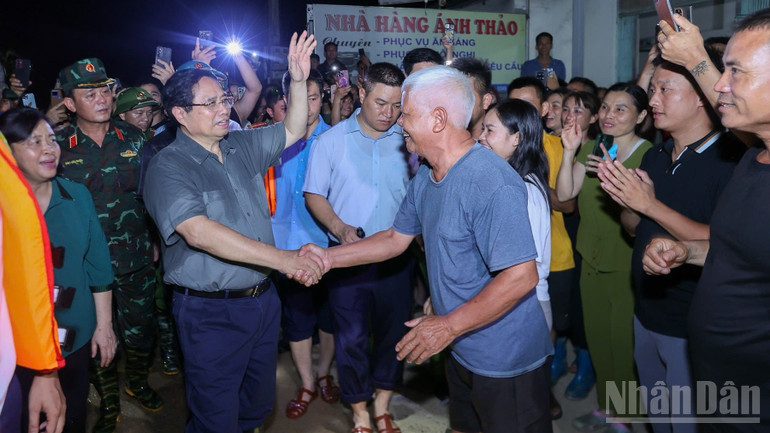 Thăm hỏi, động viên bà con nhân dân, Thủ tướng chia sẻ với những khó khăn, thiệt hại của bà con, mong bà con luôn đoàn kết, hỗ trợ lẫn nhau và nếu có lũ thì tuân thủ nghiêm hướng dẫn của các cơ quan chức năng, ưu tiên cứu trợ người già, trẻ nhỏ, phụ nữ có thai…