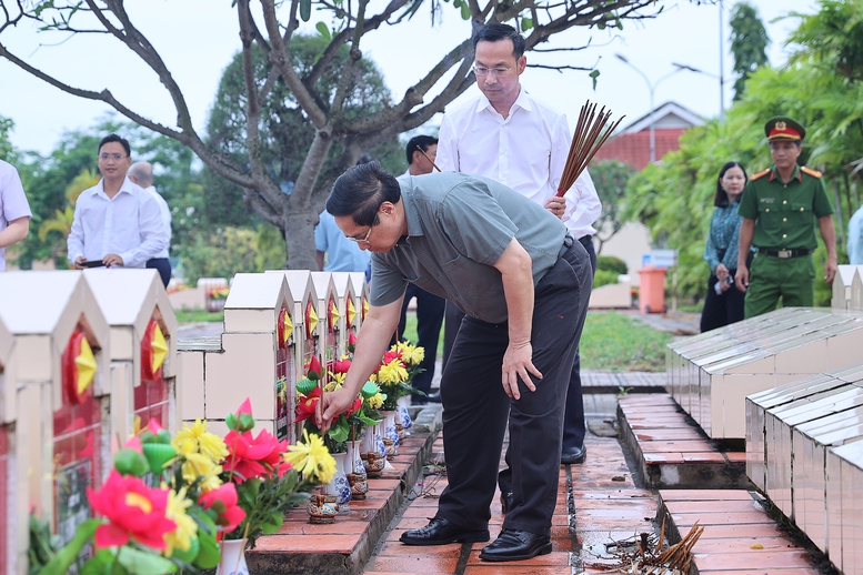 Trong không khí thiêng liêng, Thủ tướng Chính phủ cùng đoàn công tác và lãnh đạo tỉnh đã mặc niệm, bày tỏ lòng thành kính, tri ân sâu sắc, tưởng nhớ công ơn, sự hy sinh to lớn của các anh hùng liệt sĩ, các Mẹ Việt Nam anh hùng, những người có công đối với sự nghiệp đấu tranh giải phóng dân tộc, thống nhất đất nước, xây dựng và bảo vệ Tổ quốc, vì độc lập, tự do, vì chủ nghĩa xã hội, vì hạnh phúc, ấm no của nhân dân.