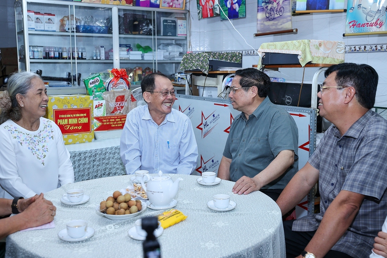 Tiếp đó, Thủ tướng Phạm Minh Chính và đoàn công tác đã tới thăm, tặng quà các gia đình chính sách trên địa bàn tỉnh An Giang, gồm: ông Phạm Phong Hải (sinh năm 1952, là thương binh mất 69% sức lao động, hiện trú tại phường Châu Đốc), ông Huỳnh Văn Anh (sinh năm 1967, là bệnh binh mất 81% sức lao động, hiện trú tại phường Châu Đốc), gia đình bà Nguyễn Thị Có (sinh năm 1940, là người có công với cách mạng, hiện trú tại xã Bình Mỹ).