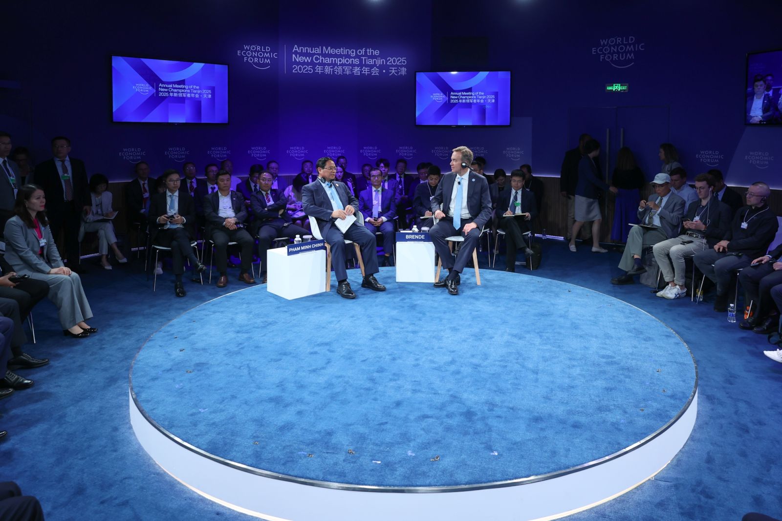 Trưa 25/6, tại Thiên Tân, Trung Quốc, trong khuôn khổ tham dự Hội nghị thường niên các nhà tiên phong lần thứ 16 của Diễn đàn Kinh tế Thế giới (WEF 16 Thiên Tân), Thủ tướng Phạm Minh Chính đã tham dự phiên đối thoại chính sách "Kỷ nguyên mới của Việt Nam: Từ tầm nhìn đến hành động".