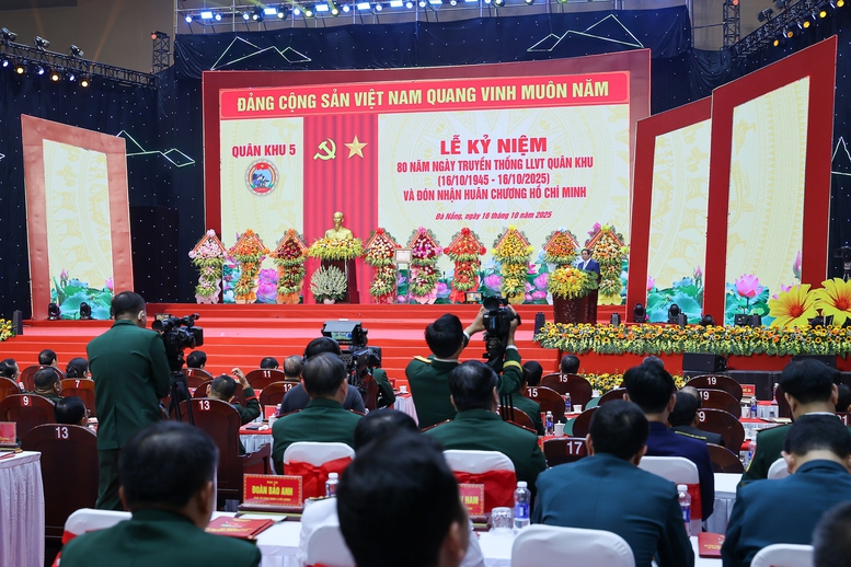 Chiều 16/10, tại Đà Nẵng, Thủ tướng Chính phủ Phạm Minh Chính dự lễ kỷ niệm 80 năm Ngày truyền thống lực lượng vũ trang Quân khu 5 (16/10/1945- 16/10/2025) và thay mặt lãnh đạo Đảng, Nhà nước trao Huân chương Hồ Chí Minh tặng lực lượng vũ trang Quân khu 5.
