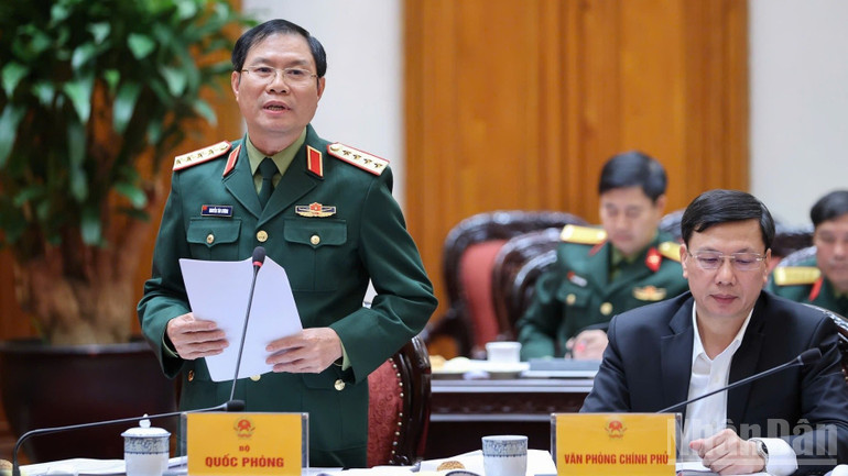 Đại diện lãnh đạo Bộ Quốc phòng phát biểu ý kiến tại cuộc họp. (Ảnh: Trần Hải)