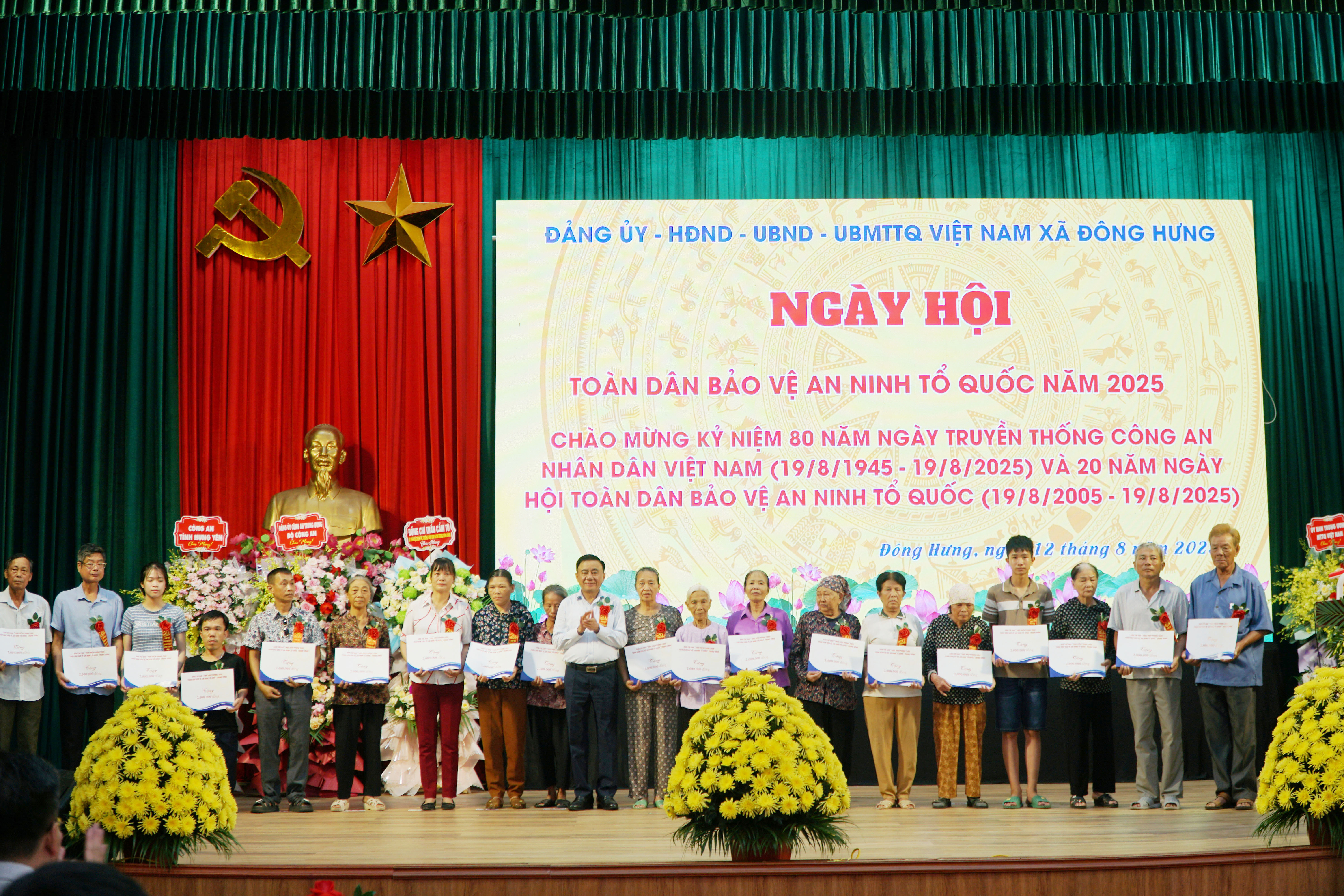 Nhân dịp này, đồng chí Trần Cẩm Tú tặng 20 suất quà cho các gia đình chính sách; nhiều tập thể, cá nhân tiêu biểu trong phong trào Toàn dân bảo vệ an ninh Tổ quốc của tỉnh Hưng Yên được Bộ Công an, UBND tỉnh Hưng Yên, Công an tỉnh khen thưởng. Nhiều hộ nghèo, gia đình khó khăn được tặng quà của Ủy ban Trung ương MTTQ Việt Nam, Bộ Công an và của tỉnh.