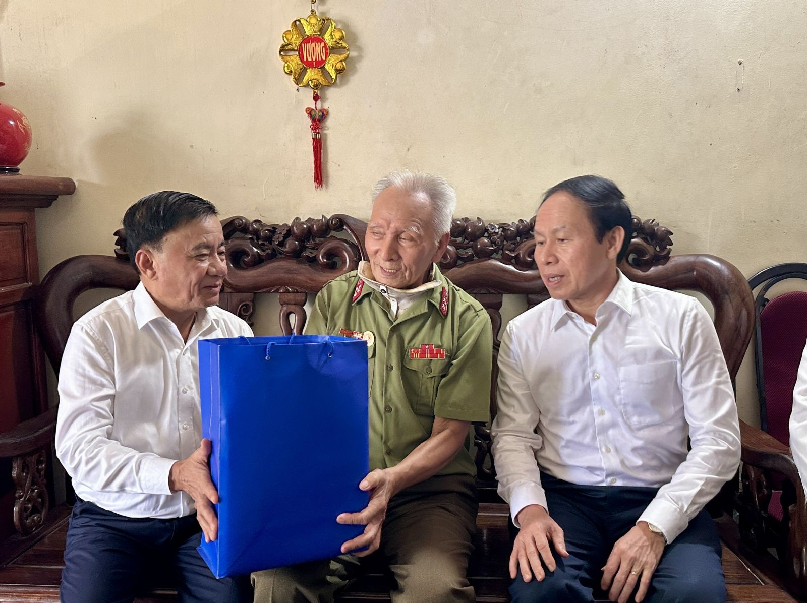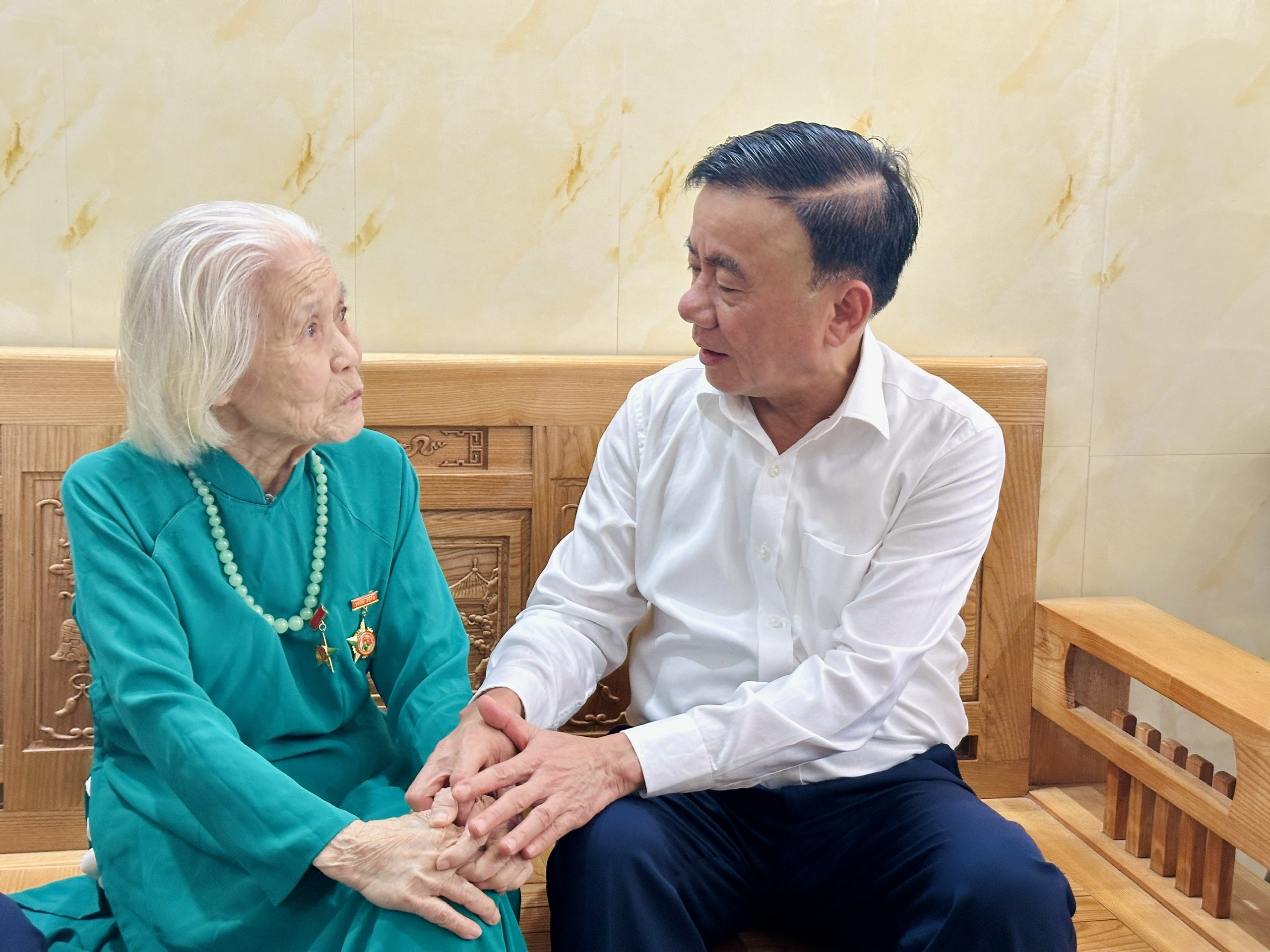 Dịp này, đồng chí Trần Cẩm Tú đến thăm, tặng quà Mẹ Việt Nam anh hùng Trần Thị Cải ở phường Gia Viên và thương binh Phạm Huy Hồng ở phường Hải An.