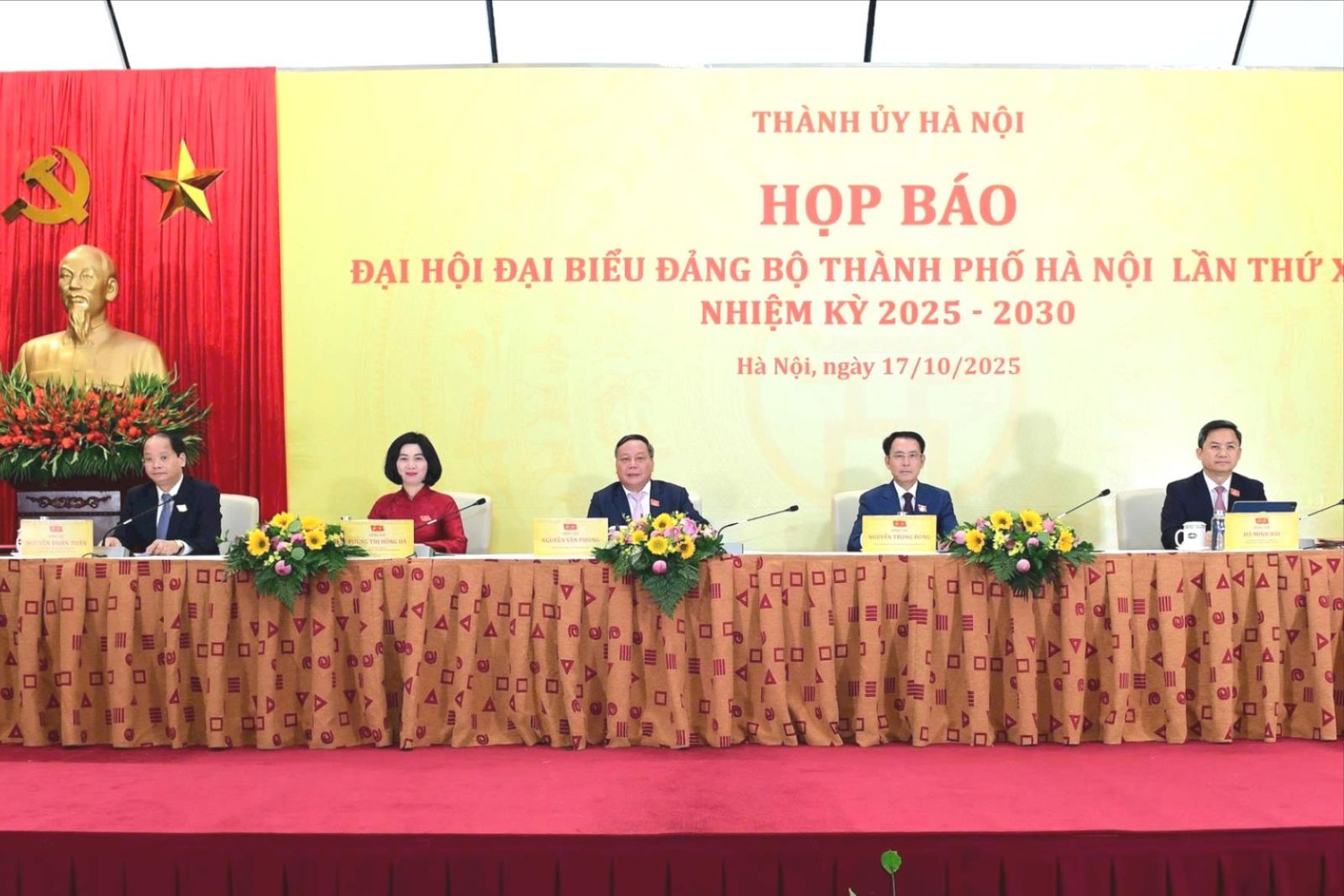 Chủ trì họp báo có các đồng chí: Nguyễn Văn Phong, Phó Bí thư Thường trực Thành ủy Hà Nội; Phùng Thị Hồng Hà, Phó Bí thư Thành ủy, Phó Chủ tịch Thường trực HĐND thành phố Hà Nội; Nguyễn Trọng Đông, Phó Bí thư Thành ủy, Phó Chủ tịch UBND thành phố Hà Nội; Hà Minh Hải, Ủy viên Ban Thường vụ Thành ủy, Trưởng ban Tổ chức Thành ủy Hà Nội ; Nguyễn Doãn Toản, Ủy viên Ban Thường vụ Thành ủy, Trưởng ban Tuyên giáo và Dân vận Thành ủy Hà Nội.