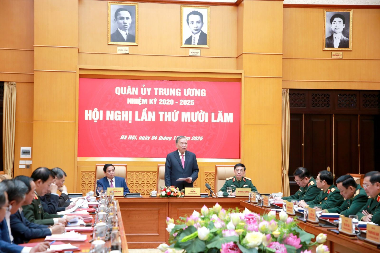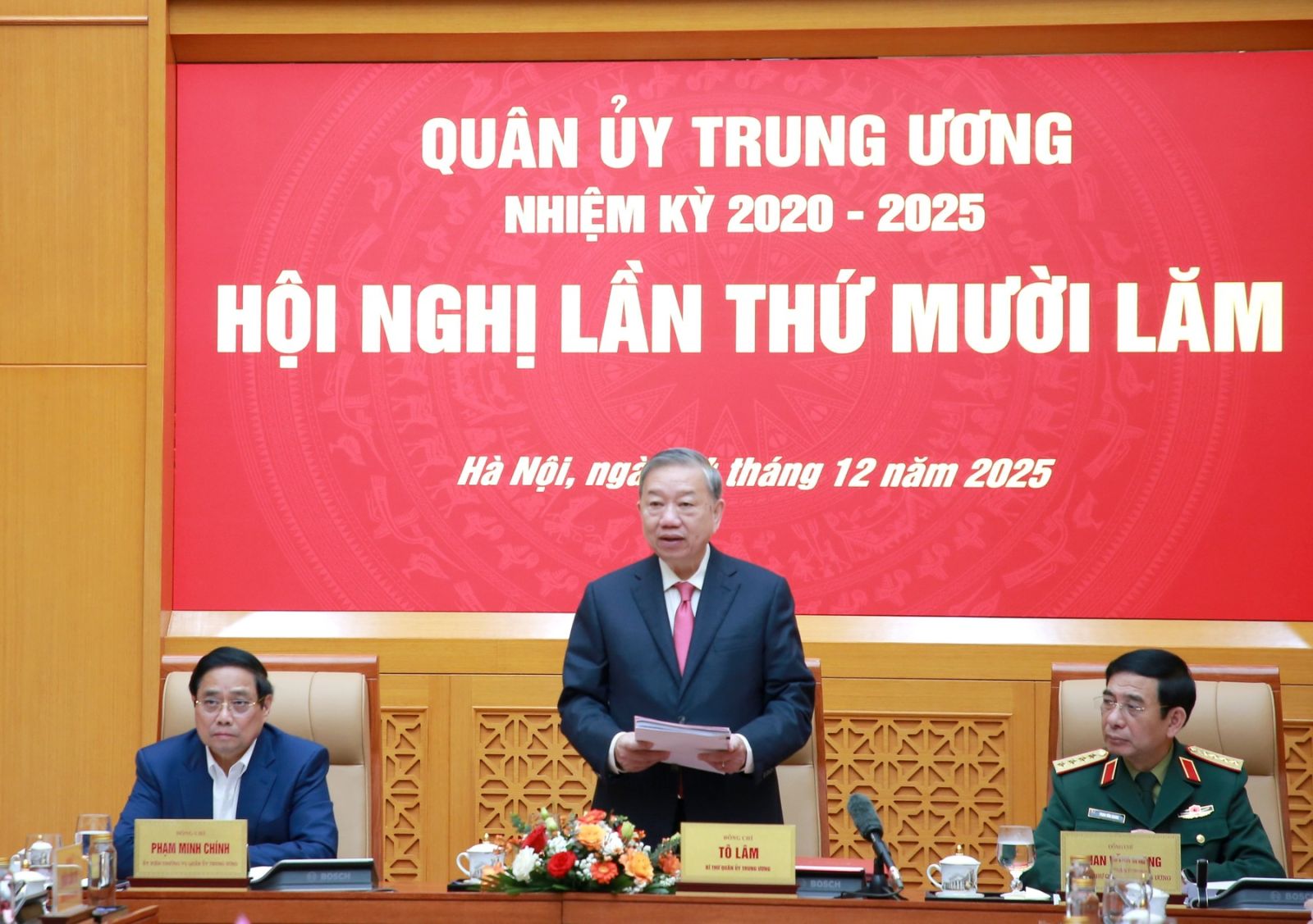 Phát biểu kết luận hội nghị, Tổng Bí thư Tô Lâm, Bí thư Quân ủy Trung ương đánh giá cao sự chuẩn bị chu đáo, kỹ lưỡng của Thường vụ Quân ủy Trung ương; khẳng định, năm 2025, dưới sự lãnh đạo, chỉ đạo của Đảng, Nhà nước, trực tiếp là Quân ủy Trung ương, Bộ Quốc phòng, toàn quân đã thực hiện thắng lợi nhiệm vụ quân sự, quốc phòng và xây dựng Đảng bộ Quân đội trong sạch, vững mạnh. Đặc biệt, toàn quân luôn có quyết tâm chính trị cao, nỗ lực lớn, hoàn thành tốt các nhiệm vụ, trong đó có nhiều nhiệm vụ hoàn thành xuất sắc.