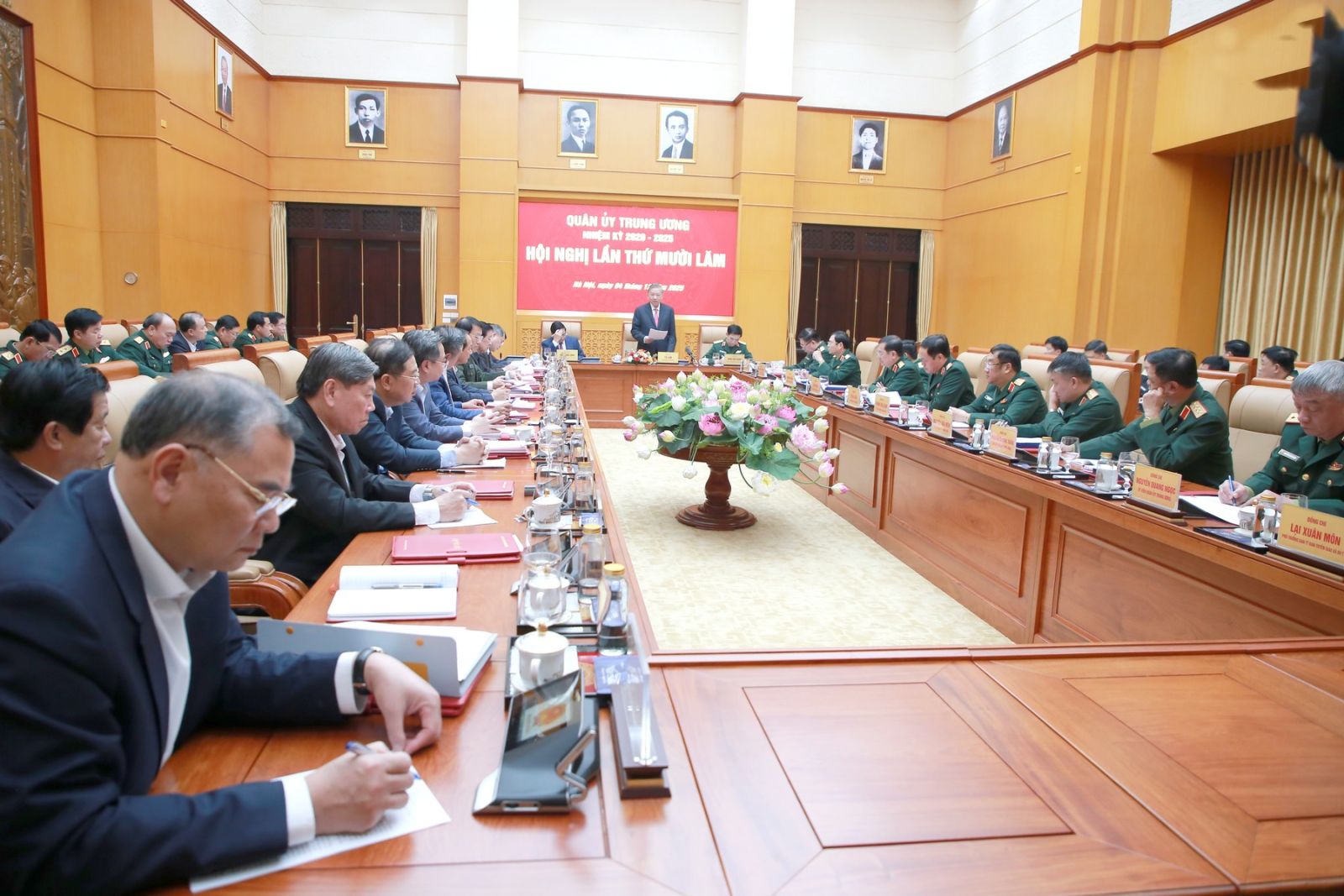 Sáu là, triển khai đồng bộ các giải pháp xây dựng Đảng bộ Quân đội trong sạch, vững mạnh toàn diện, mẫu mực, tiêu biểu. Đặc biệt coi trọng triển khai hiệu quả chính sách thu hút, trọng dụng nhân tài, xây dựng đội ngũ cán bộ Quân đội hiện đại. Lãnh đạo, chỉ đạo quán triệt, cụ thể hóa và thực hiện có hiệu quả các quy định về công tác cán bộ mà Bộ Chính trị đã ban hành. Thực hiện nghiêm nguyên tắc tập trung dân chủ trong công tác cán bộ. Xây dựng đội ngũ cán bộ Quân đội thực sự vững mạnh, đáp ứng yêu cầu nhiệm vụ thời kỳ mới. Trước mắt, lãnh đạo, chỉ đạo toàn quân tích cực tham gia chuẩn bị, phục vụ tổ chức Đại hội đại biểu toàn quốc lần thứ XIV của Đảng, góp phần vào thành công chung của đại hội.