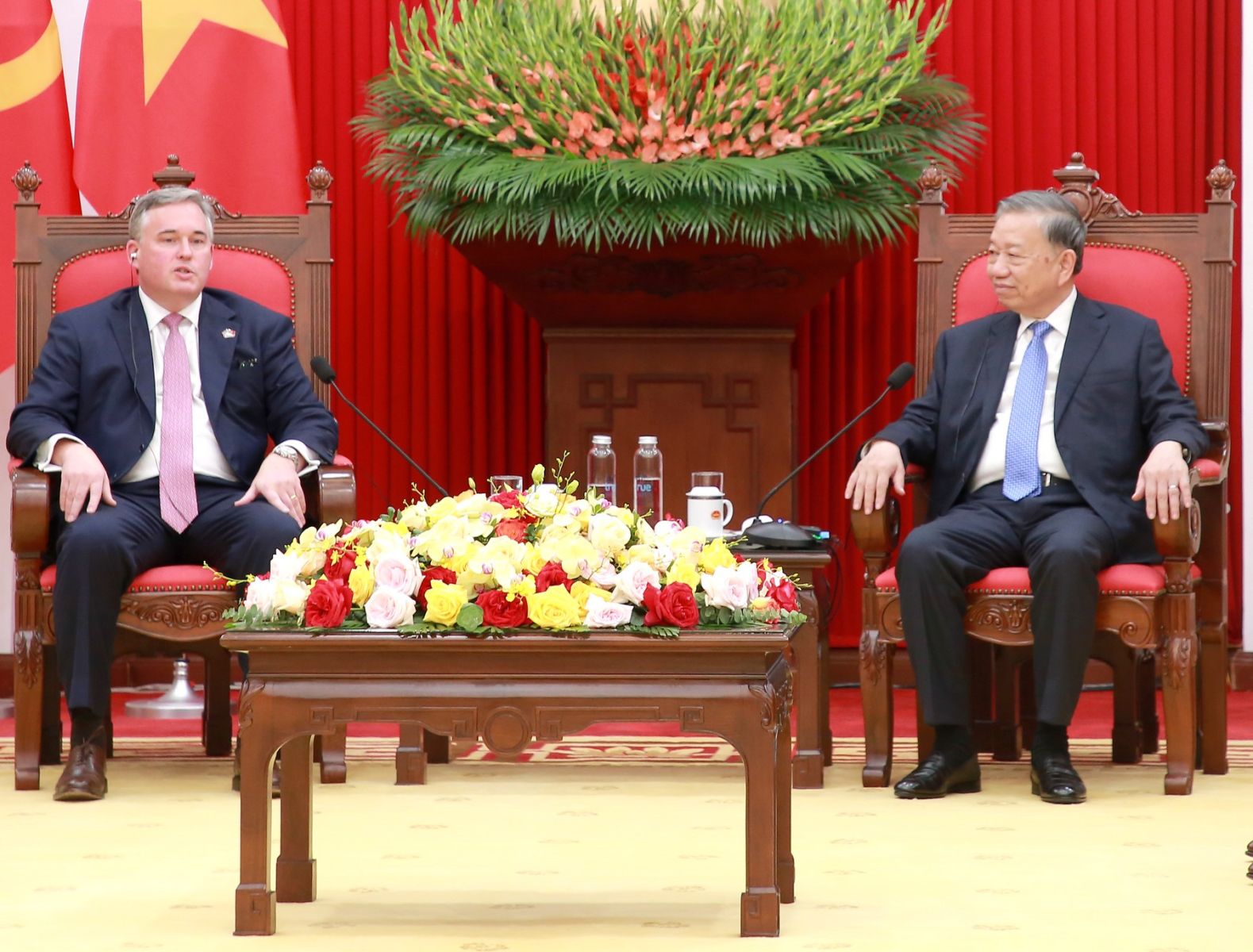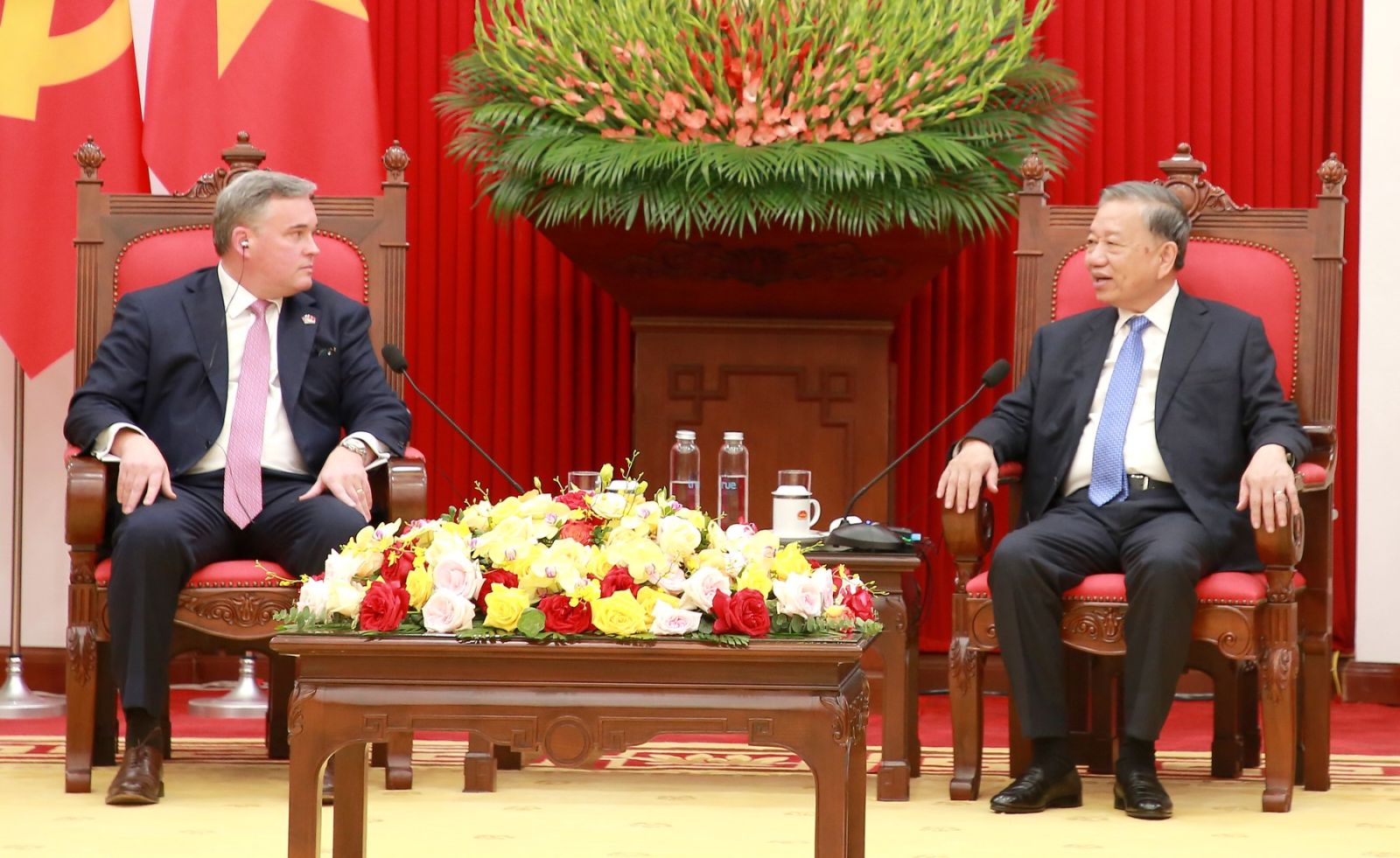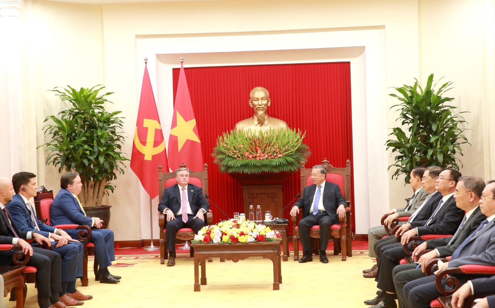 Tổng Bí thư Tô Lâm khẳng định Việt Nam coi trọng quan hệ với Hoa Kỳ, mong muốn quan hệ Đối tác chiến lược toàn diện giữa hai bên tiếp tục phát triển, trong đó hợp tác năng lượng là một trong những trọng tâm của quan hệ song phương, vì lợi ích của doanh nghiệp, nhân dân hai nước, vì hòa bình, ổn định và phát triển trong khu vực và trên thế giới.