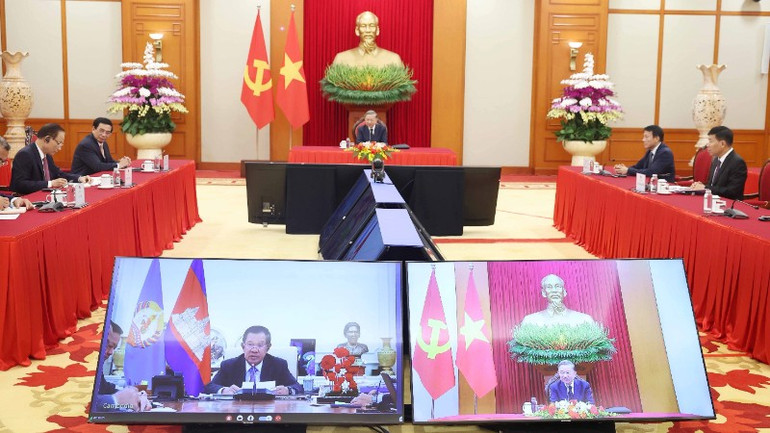 (ĐCSVN) - Chiều 14/8, theo đề nghị của phía Campuchia, Tổng Bí thư Ban Chấp hành Trung ương Đảng Cộng sản Việt Nam Tô Lâm đã có cuộc điện đàm với Chủ tịch Đảng Nhân dân Campuchia Hun Sen để trao đổi các biện pháp nhằm tăng cường quan hệ giữa hai Đảng, hai nước.