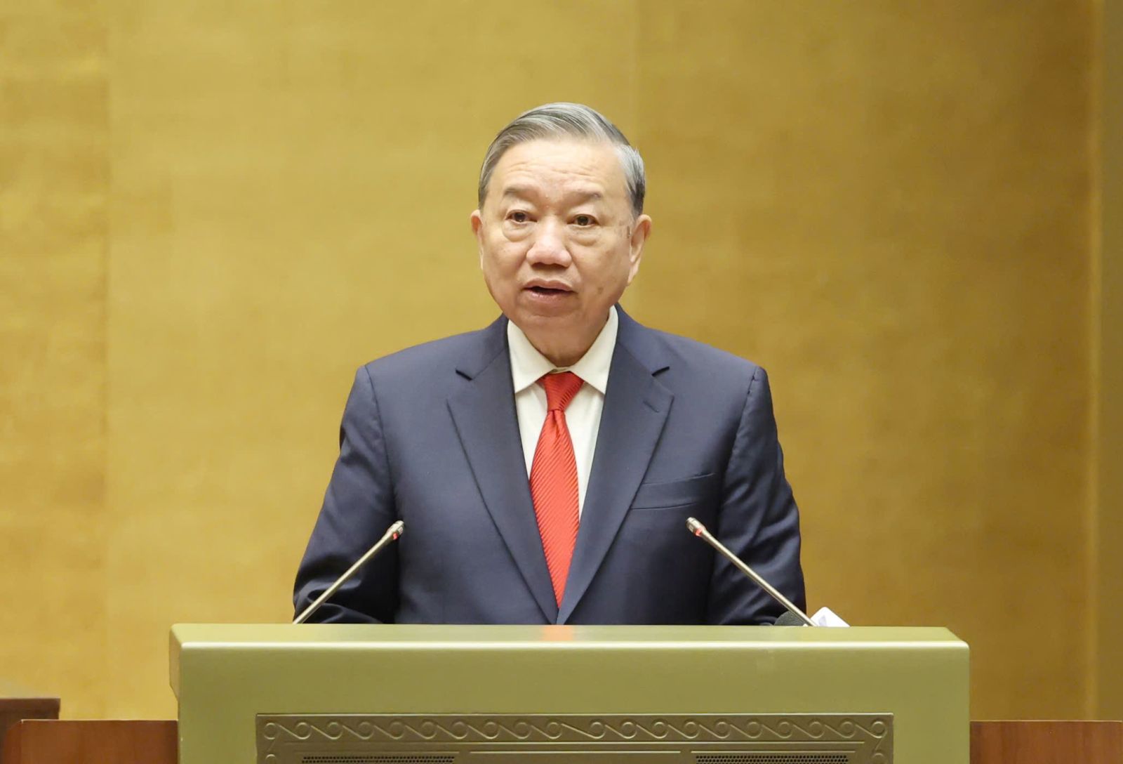 Tổng Bí thư Tô Lâm cùng các đồng chí lãnh đạo, nguyên lãnh đạo Đảng, Nhà nước dự Hội nghị.