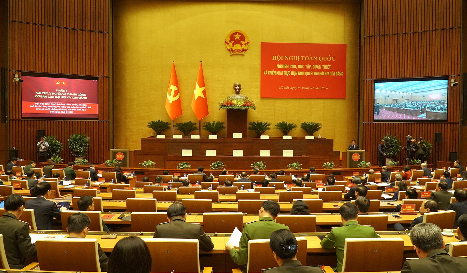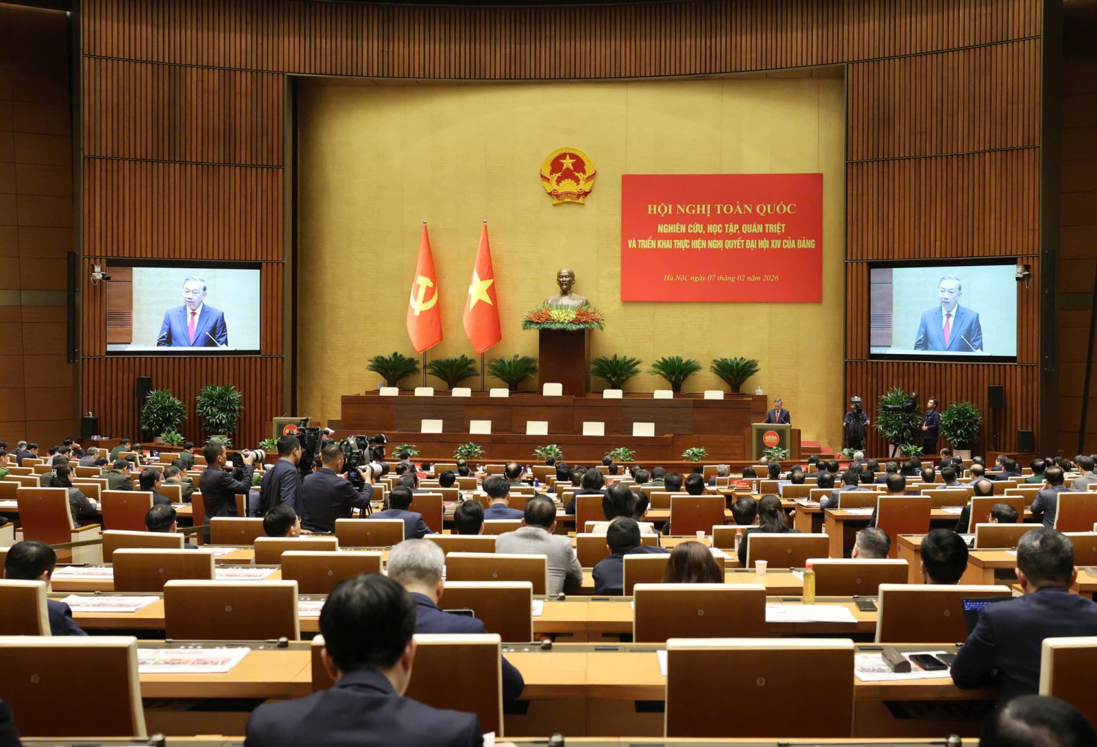 Ngày 7/2, Bộ Chính trị, Ban Bí thư Trung ương Đảng tổ chức Hội nghị toàn quốc nghiên cứu, học tập, quán triệt và triển khai thực hiện Nghị quyết Đại hội XIV của Đảng. Hội nghị được phát thanh, truyền hình trực tiếp để cán bộ, đảng viên và các tầng lớp nhân dân theo dõi.