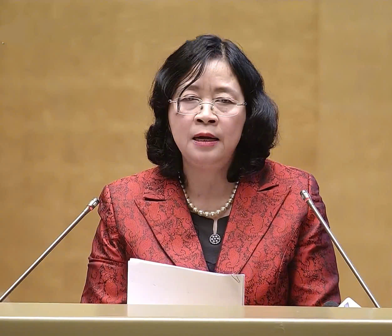 Đồng chí Bùi Thị Minh Hoài, Ủy viên Bộ Chính trị, Bí thư Trung ương Đảng, Chủ tịch Ủy ban Trung ương Mặt trận Tổ quốc Việt Nam giới thiệu Chuyên đề: "Phát huy sức mạnh Đại đoàn kết toàn dân tộc trong sự nghiệp xây dựng, phát triển đất nước và bảo vệ Tổ quốc trong Kỷ nguyên mới."