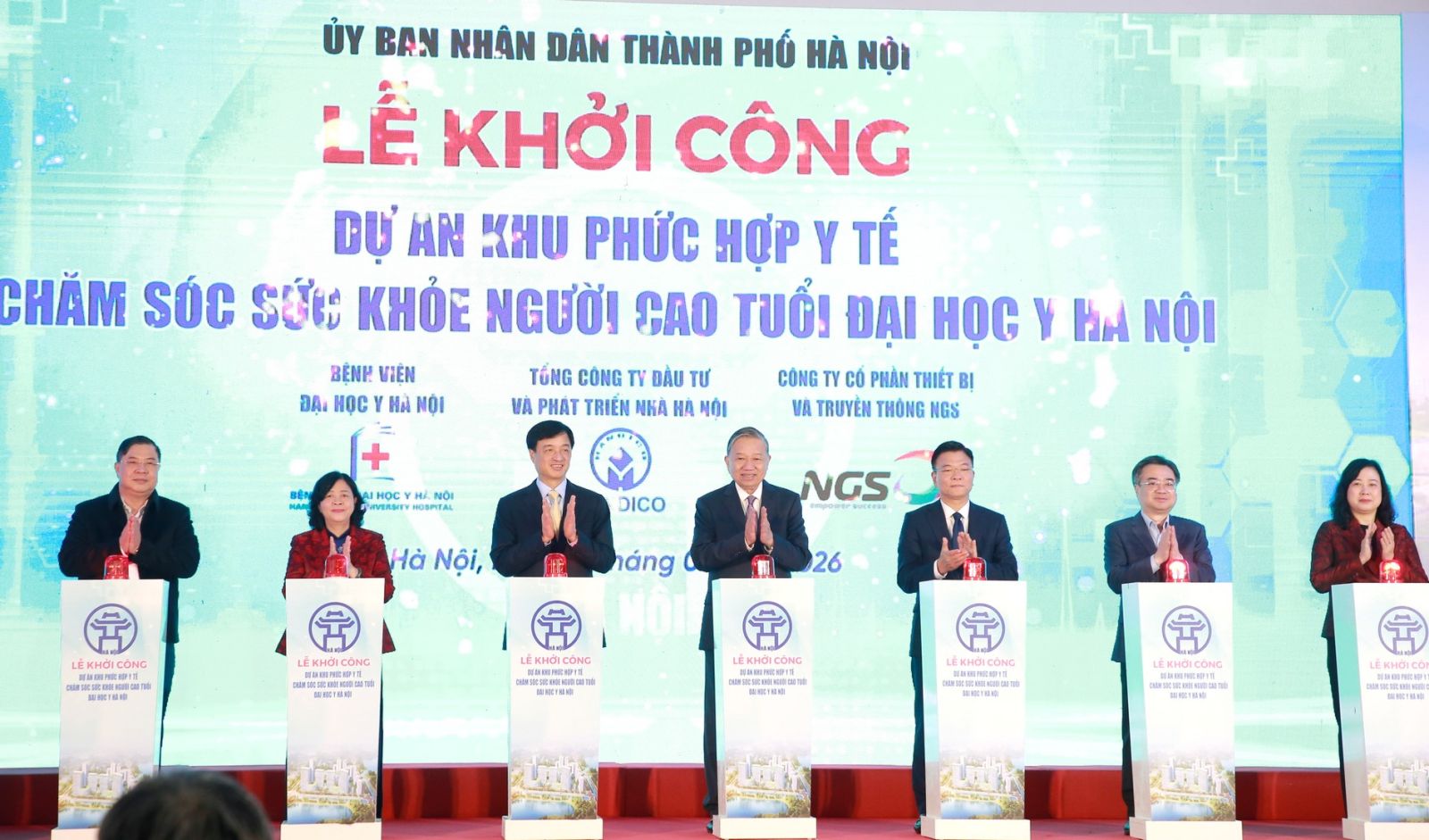 Phát biểu tại Lễ khởi công, Tổng Bí thư Tô Lâm nêu rõ, Dự án Khu phức hợp Y tế - Chăm sóc sức khỏe người cao tuổi - Đại học Y Hà Nội có ý nghĩa quan trọng, không chỉ đối với Thủ đô Hà Nội, mà còn đối với chiến lược bảo vệ, chăm sóc và nâng cao sức khỏe Nhân dân, đặc biệt là người cao tuổi, trong bối cảnh nước ta đang bước vào giai đoạn già hóa dân số nhanh.