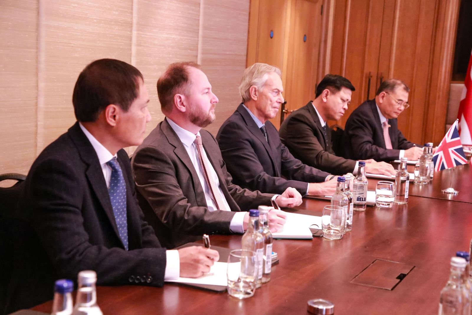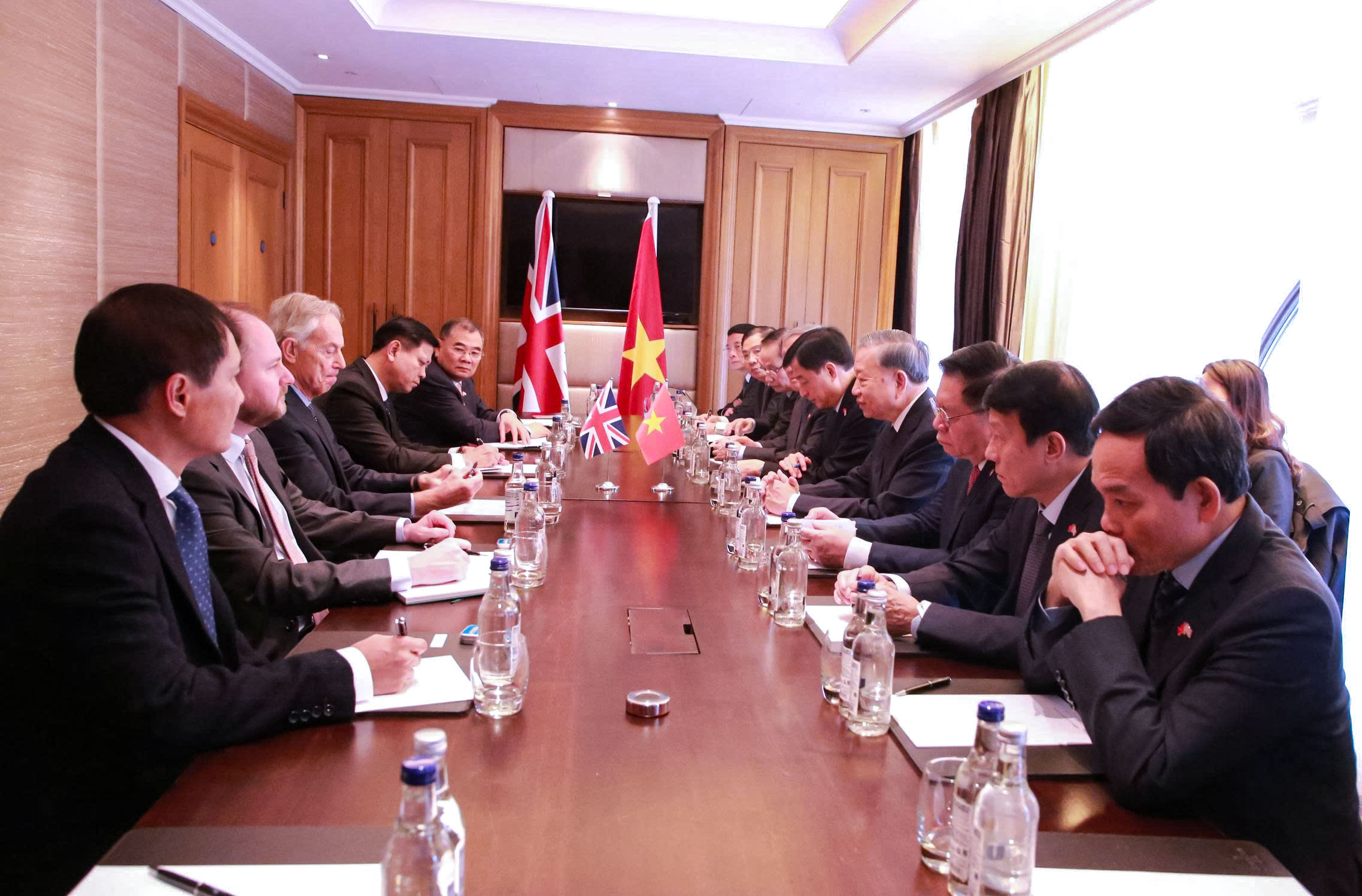 Ông Tony Blair bày tỏ vinh dự được gặp Tổng Bí thư Tô Lâm và Đoàn đại biểu cấp cao Việt Nam, chúc mừng Việt Nam và Anh đã nâng cấp quan hệ lên Đối tác chiến lược toàn diện. Đánh giá cao những thành tựu mà Việt Nam đã đạt được thời gian qua, nhất là với những cải cách mạnh mẽ gần đây trong sắp xếp tổ chức bộ máy, dưới sự lãnh đạo của Đảng Cộng sản Việt Nam và cá nhân Tổng Bí thư Tô Lâm, ông Tony Blair khẳng định Việt Nam hiện đang là một điểm sáng của thế giới, nhấn mạnh Viện Tony Blair sẵn sàng tăng cường hỗ trợ Việt Nam trong các lĩnh vực mà Viện có thế mạnh như tư vấn chính sách về xây dựng trung tâm tài chính, chuyển đổi số, chiến lược năng lượng xanh, thu hút đầu tư chất lượng cao, phát triển nguồn nhân lực và nâng cao năng lực quản trị nhà nước thông qua ứng dụng trí tuệ nhân tạo, nâng cao hiệu suất làm việc. Đồng thời cho biết Viện sẵn sàng hỗ trợ và tư vấn Việt Nam phát triển để tránh rơi vào bẫy thu nhập trung bình, như lời đề nghị của Tổng Bí thư. Đồng thời sẵn sàng làm cầu nối để kết nối các tập đoàn lớn đầu tư vào lĩnh vực khoa học công nghệ tại Việt Nam, trong đó có tập đoàn Oracles. Ông Tony Blair bày tỏ vui mừng với những hợp tác của Viện Tony Blair với các đối tác tại Việt Nam, tin tưởng những năm tới sẽ có thêm nhiều hợp tác nữa sẽ được triển khai hiệu quả.