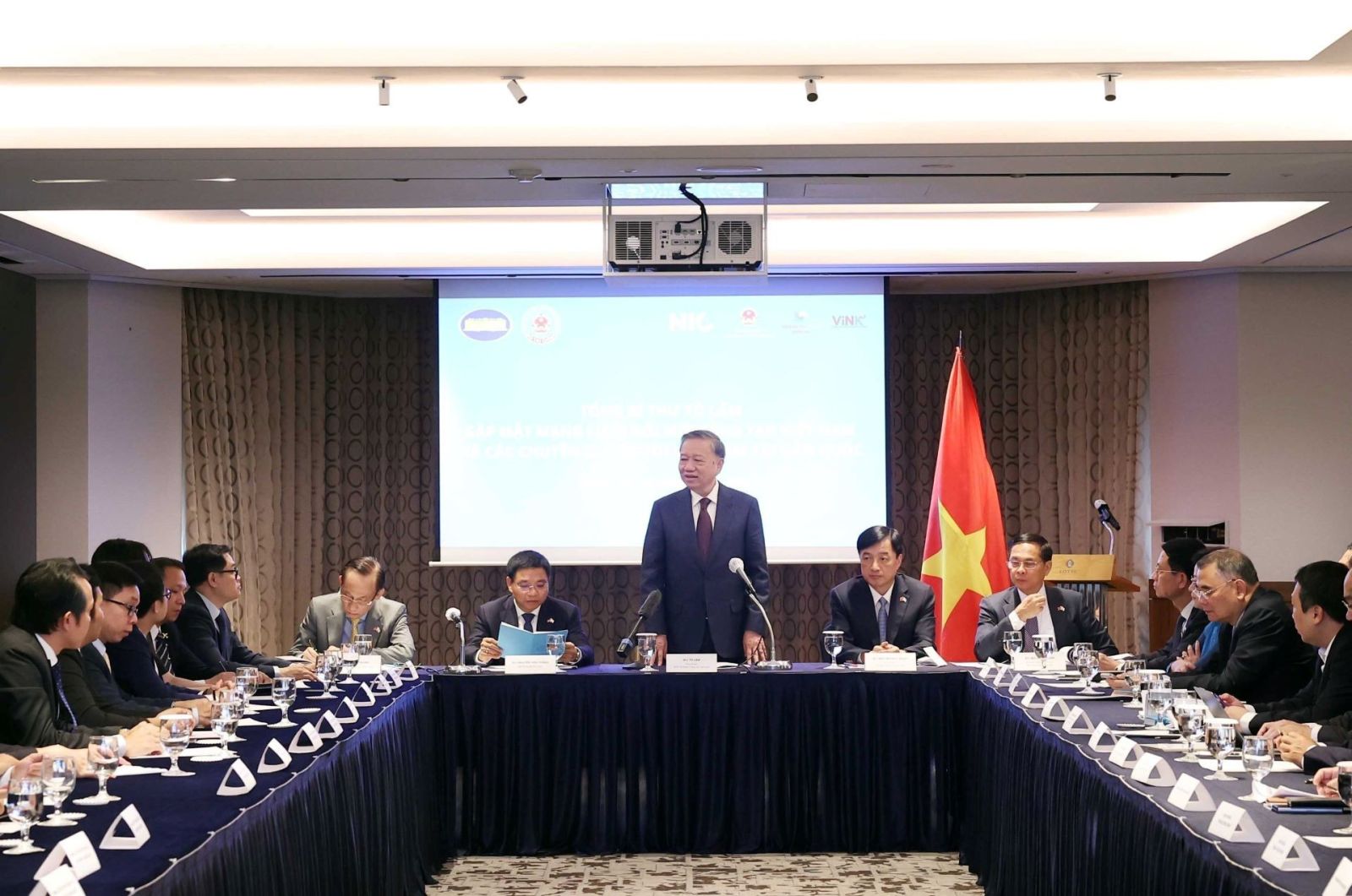 Chiều 10/8 (giờ địa phương), ngay sau khi tới Seoul, bắt đầu chuyến thăm cấp Nhà nước tới Hàn Quốc, Tổng Bí thư Tô Lâm và Đoàn đại biểu cấp cao Việt Nam đã có buổi gặp gỡ thành viên Mạng lưới Đổi mới sáng tạo Việt Nam và các chuyên gia, doanh nhân người Việt Nam tại Hàn Quốc.