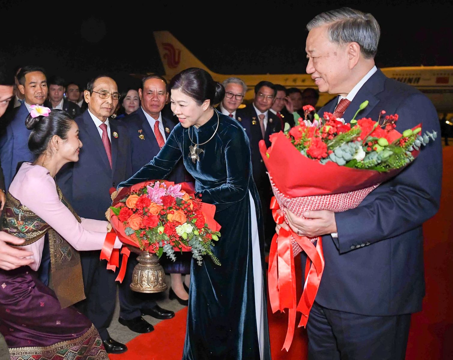 (ĐCSVN) - Tối 2/12, chuyên cơ chở Tổng Bí thư Tô Lâm và Phu nhân cùng Đoàn đại biểu cấp cao Việt Nam rời sân bay quốc tế Wattay (Vạt-tày), Thủ đô Viêng Chăn về nước, kết thúc tốt đẹp chuyến thăm cấp Nhà nước Cộng hòa Dân chủ Nhân dân Lào, dự Lễ kỷ niệm 50 năm Quốc khánh nước Cộng hòa Dân chủ Nhân dân Lào và đồng chủ trì Cuộc gặp cấp cao giữa Đảng Cộng sản Việt Nam và Đảng Nhân dân Cách mạng Lào.