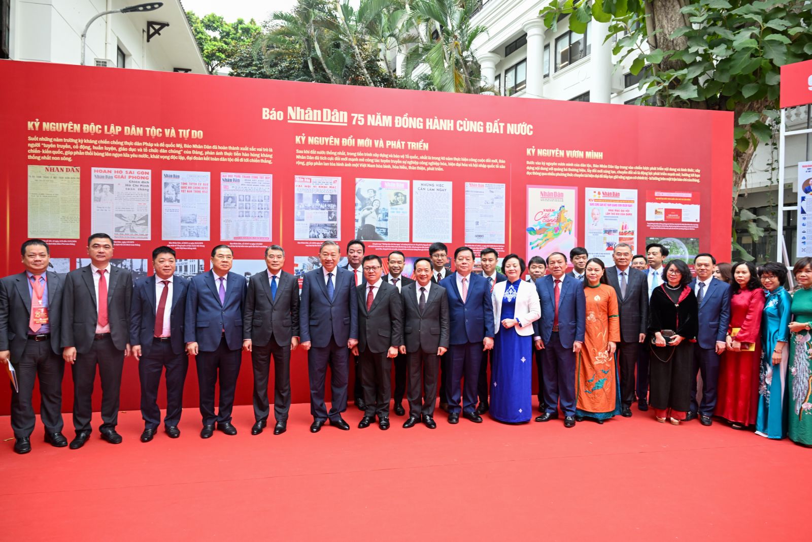 Tổng Bí thư khẳng định, 75 năm là một chặng đường rất đáng tự hào của những người làm Báo Nhân Dân. Trong toàn bộ tiến trình cách mạng Việt Nam, từ kháng chiến giành độc lập dân tộc, thống nhất đất nước, đến xây dựng chủ nghĩa xã hội, thực hiện công cuộc đổi mới, đẩy mạnh công nghiệp hóa, hiện đại hóa, hội nhập quốc tế và bảo vệ vững chắc Tổ quốc, Báo Nhân Dân luôn giữ một vị trí rất đặc biệt. Đó là cơ quan ngôn luận của Đảng, tiếng nói của Đảng, Nhà nước và Nhân dân. Đó là một định danh chính trị rất cao, một trách nhiệm xã hội rất lớn.