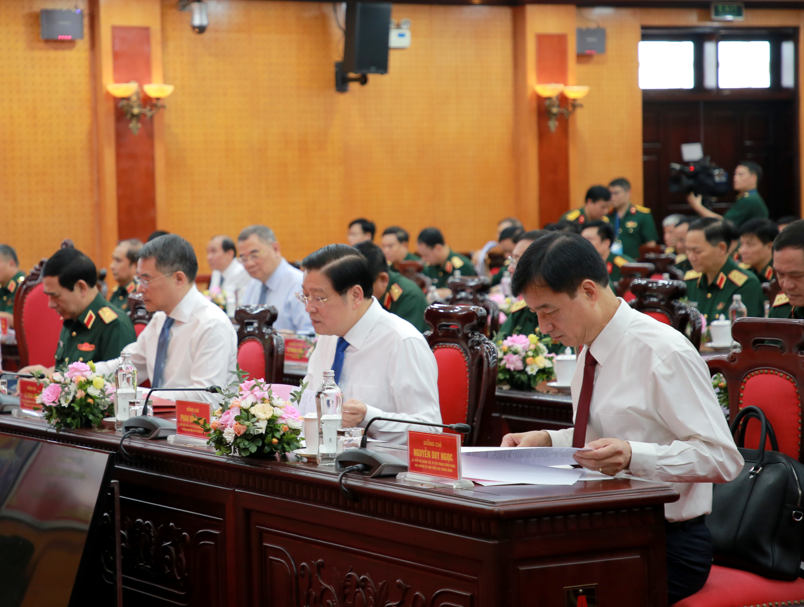 Cùng dự có các đồng chí Ủy viên Bộ Chính trị: Lê Minh Hưng, Bí thư Trung ương Đảng, Trưởng Ban Tổ chức Trung ương; Phan Đình Trạc, Bí thư Trung ương Đảng, Trưởng Ban Nội chính Trung ương; Nguyễn Duy Ngọc, Bí thư Trung ương Đảng, Chủ nhiệm Ủy ban Kiểm tra Trung ương; Nguyễn Trọng Nghĩa, Bí thư Trung ương Đảng, Trưởng Ban Tuyên giáo và Dân vận Trung ương; Phan Văn Giang, Bộ Trưởng Bộ Quốc phòng; Lương Tam Quang, Bộ trưởng Bộ Công an; các đồng chí Ủy viên Ban Bí thư, Ủy viên Trung ương Đảng, lãnh đạo các Ban Đảng Trung ương, Bộ Quốc phòng.