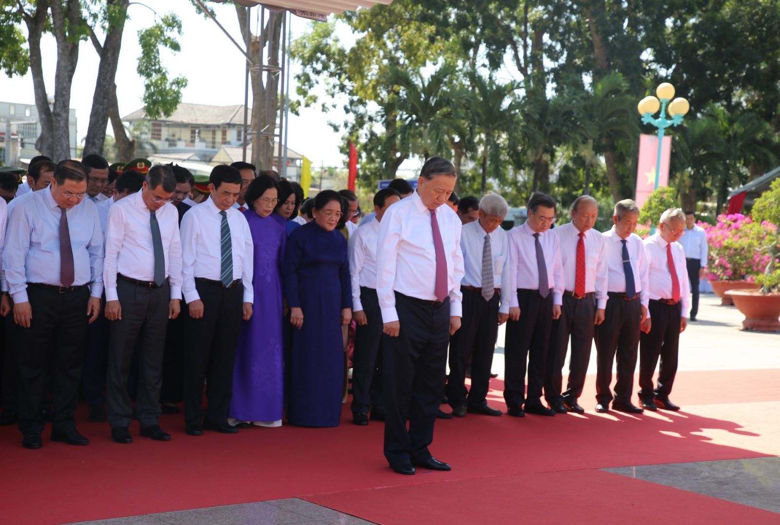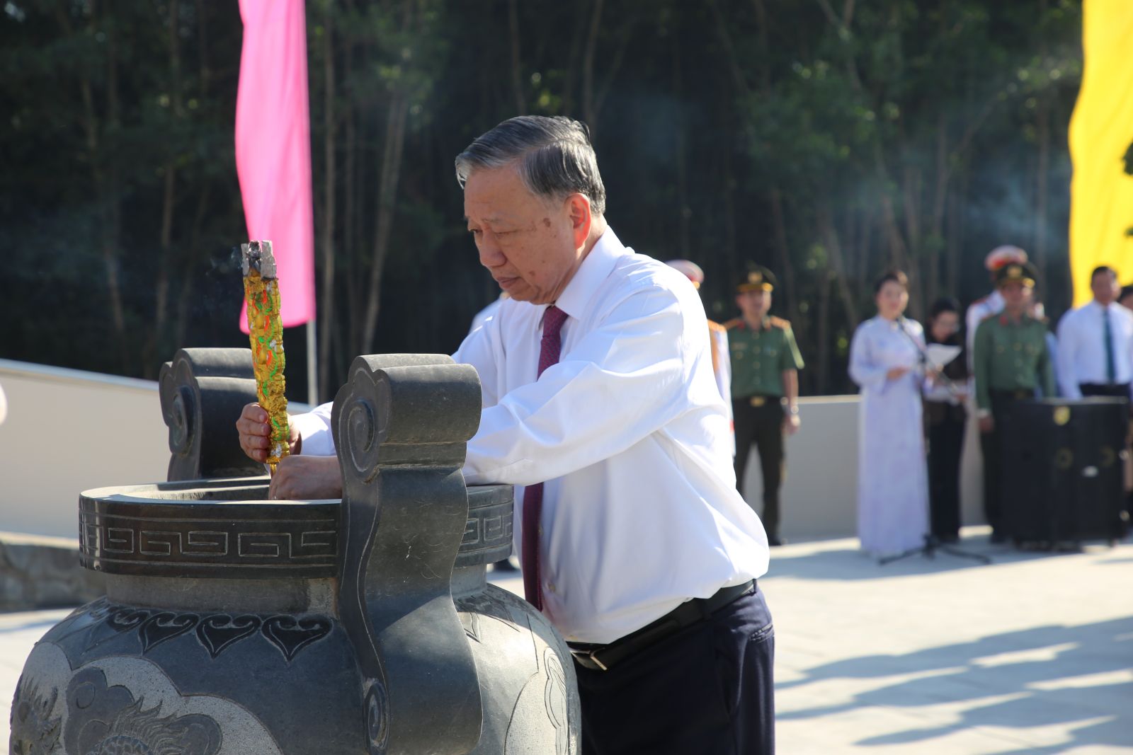 Tổng Bí thư Tô Lâm và đoàn công tác đã đến dâng hoa, dâng hương tại Khu di tích lịch sử văn hoá Bàu Rong.