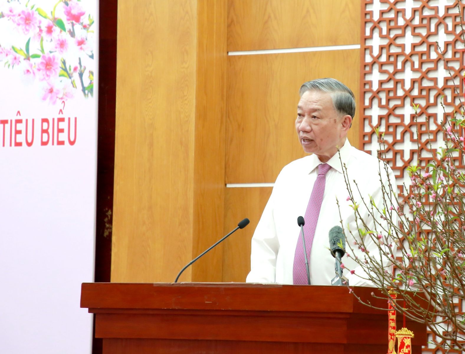 Tổng Bí thư Tô Lâm phát biểu chúc Tết Đảng bộ, chính quyền, Nhân dân tỉnh Tây Ninh.