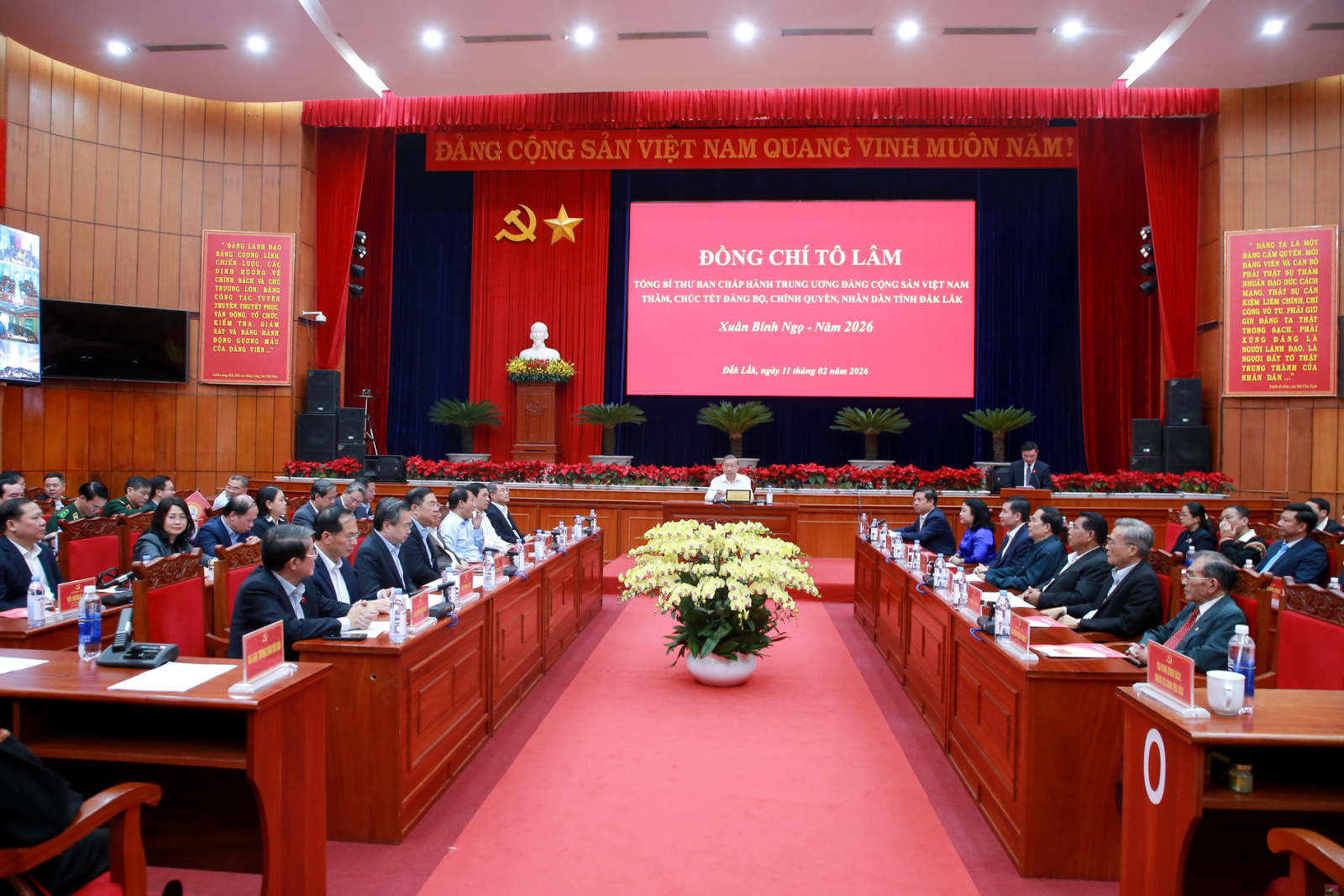 (ĐCSVN) - Nhân dịp Tết Nguyên đán Bính Ngọ 2026, Tổng Bí thư Tô Lâm và đoàn công tác Trung ương đã về thăm, làm việc và chúc Tết Đảng bộ, Chính quyền và Nhân dân tỉnh Đắk Lắk.