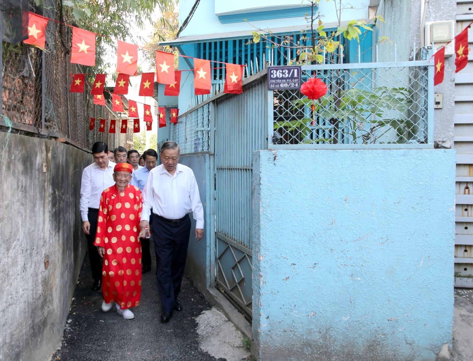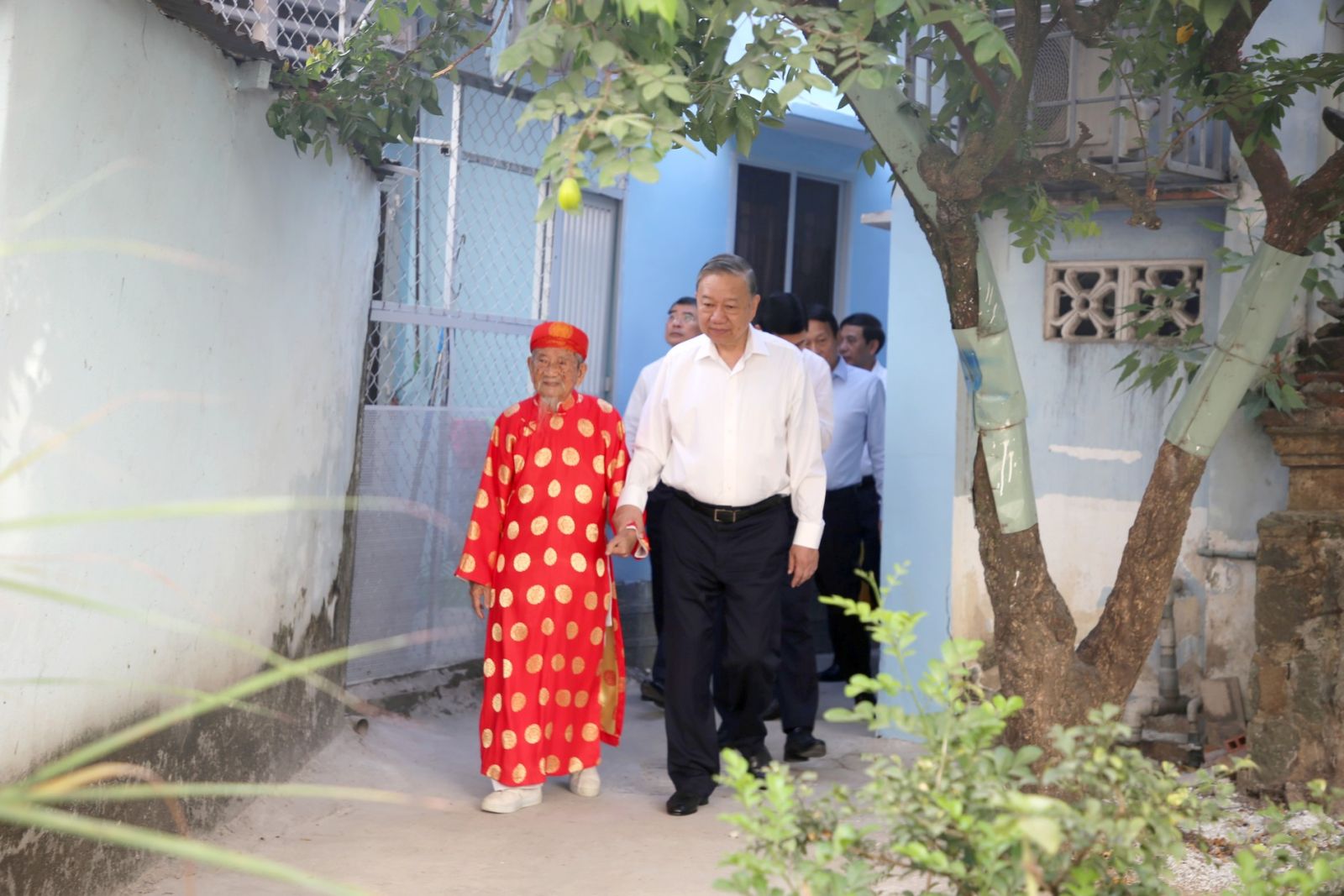 Cùng đi có các đồng chí Ủy viên Bộ Chính trị: Lê Minh Hưng, Bí thư Trung ương Đảng, Trưởng ban Tổ chức Trung ương; Đại tướng Phan Văn Giang, Bộ trưởng Bộ Quốc phòng; Đại tướng Lương Tam Quang, Bộ trưởng Bộ Công an; Trịnh Văn Quyết, Bí thư Trung ương Đảng, Trưởng ban Tuyên giáo và Dân vận Trung ương; Phạm Gia Túc, Bí thư Trung ương Đảng, Chánh Văn phòng Trung ương Đảng; Trần Lưu Quang, Bí thư Thành ủy Thành phố Hồ Chí Minh và đồng chí Hà Thị Nga, Ủy viên Trung ương Đảng, Phó Chủ tịch - Tổng Thư ký Ủy ban Trung ương MTTQ Việt Nam.