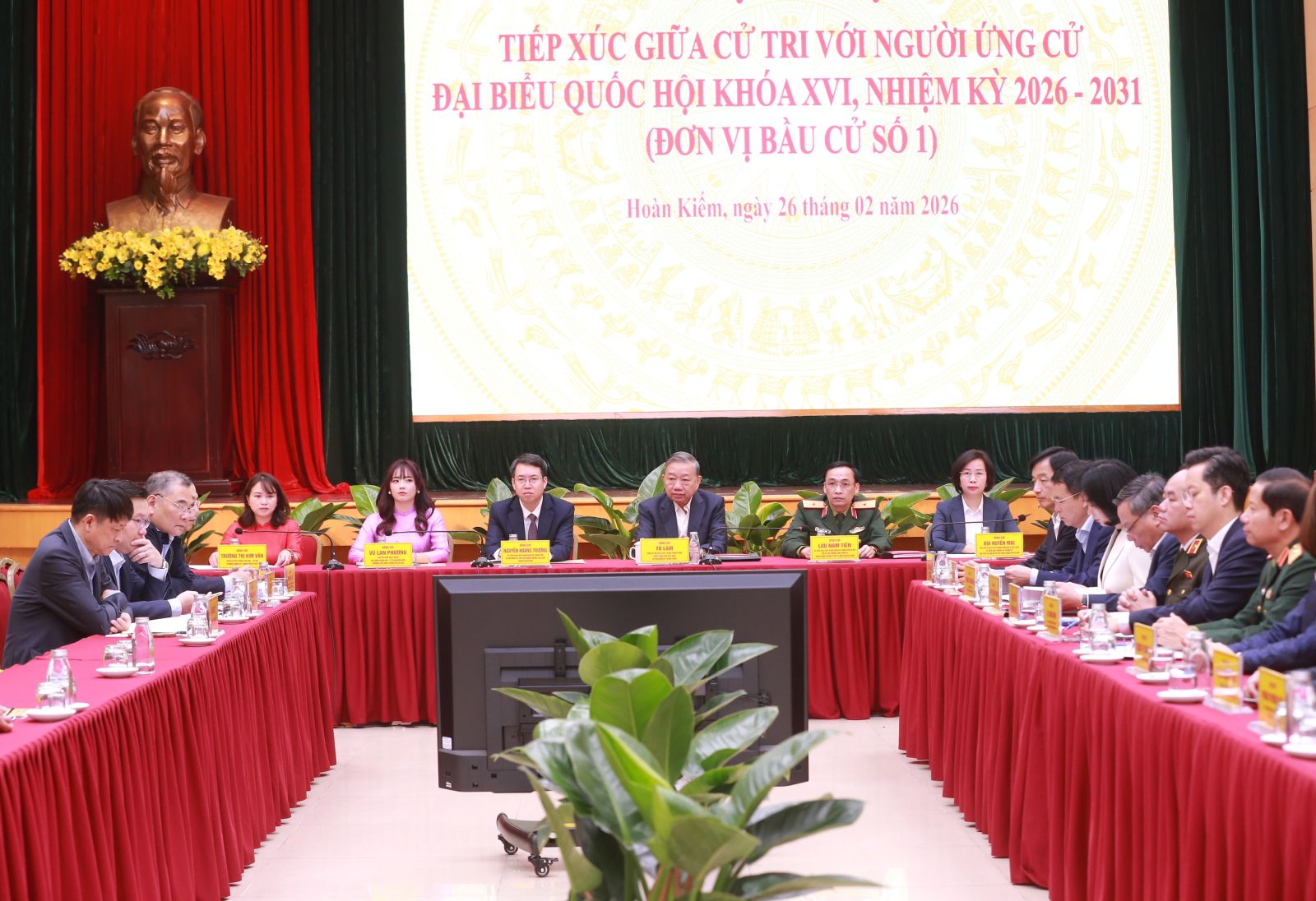 (ĐCSVN) – Sáng 26/2, Ủy ban Mặt trận Tổ quốc Việt Nam TP Hà Nội đã tổ chức Hội nghị tiếp xúc cử tri với người ứng cử đại biểu Quốc hội khóa XVI, nhiệm kỳ 2026-2031 gồm Tổng Bí thư Tô Lâm và 04 người ứng cử đơn vị bầu cử số 01, Thành phố Hà Nội.