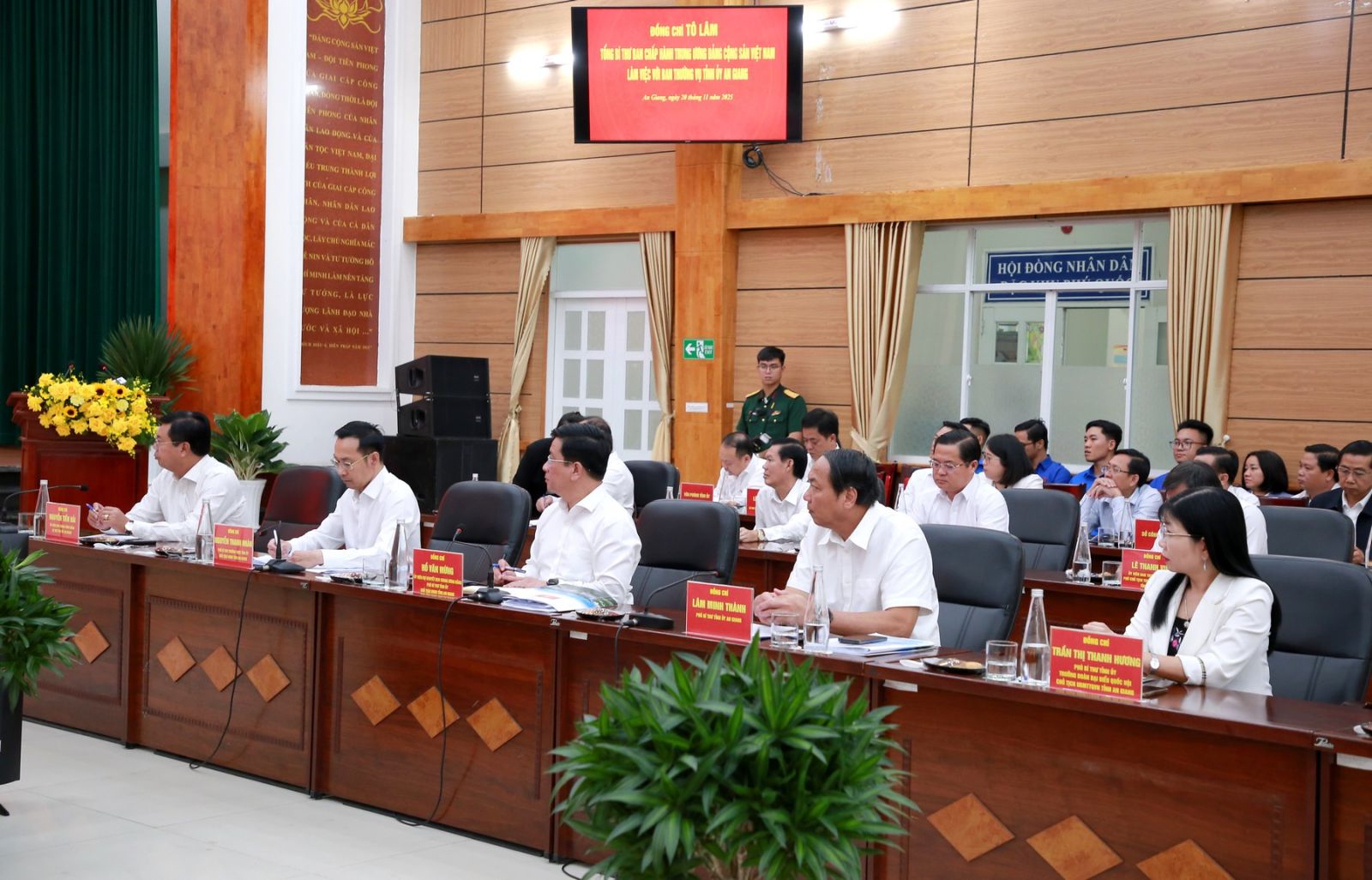Cùng dự có các đồng chí Ủy viên Bộ Chính trị, Bí thư Trung ương Đảng: Lê Minh Hưng, Trưởng ban Tổ chức Trung ương; Bùi Thị Minh Hoài, Chủ tịch Ủy ban Trung ương Mặt trận Tổ quốc Việt Nam; các đồng chí Ủy viên Bộ Chính trị: Nguyễn Xuân Thắng, Giám đốc Học viện Chính trị Quốc gia Hồ Chí Minh, Chủ tịch Hội đồng Lý luận Trung ương; Nguyễn Hòa Bình, Phó Thủ tướng Thường trực Chính phủ; Đại tướng Phan Văn Giang, Phó Bí thư Quân ủy Trung ương, Bộ trưởng Bộ Quốc phòng; Đại tướng Lương Tam Quang, Bộ trưởng Bộ Công an; Nguyễn Duy Ngọc, Bí thư Thành ủy Hà Nội; các đồng chí Ủy viên Ban Bí thư, Ủy viên Trung ương Đảng, lãnh đạo Đảng, Nhà nước, các ban, bộ, ngành Trung ương và Ban Thường vụ Tỉnh ủy An Giang.