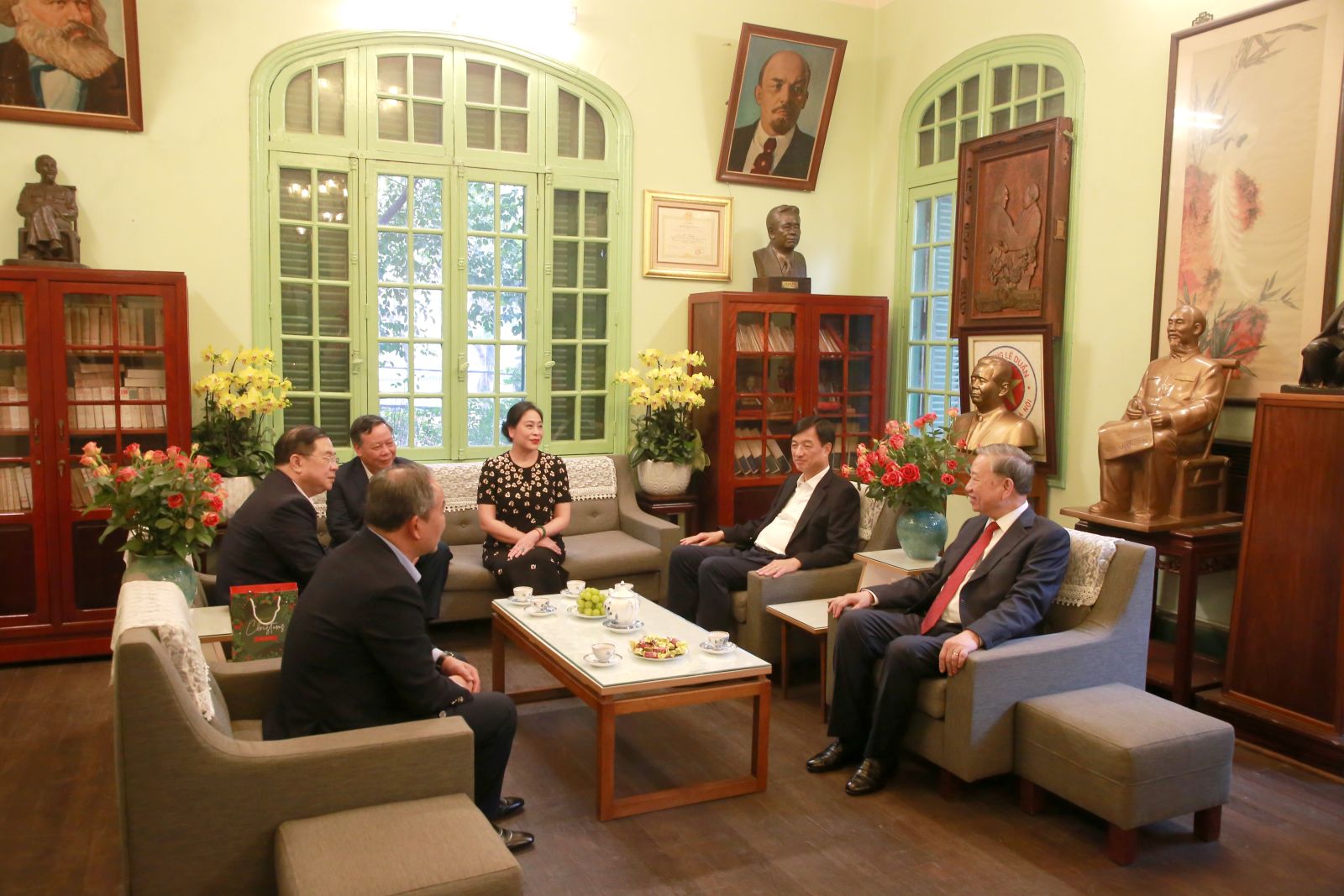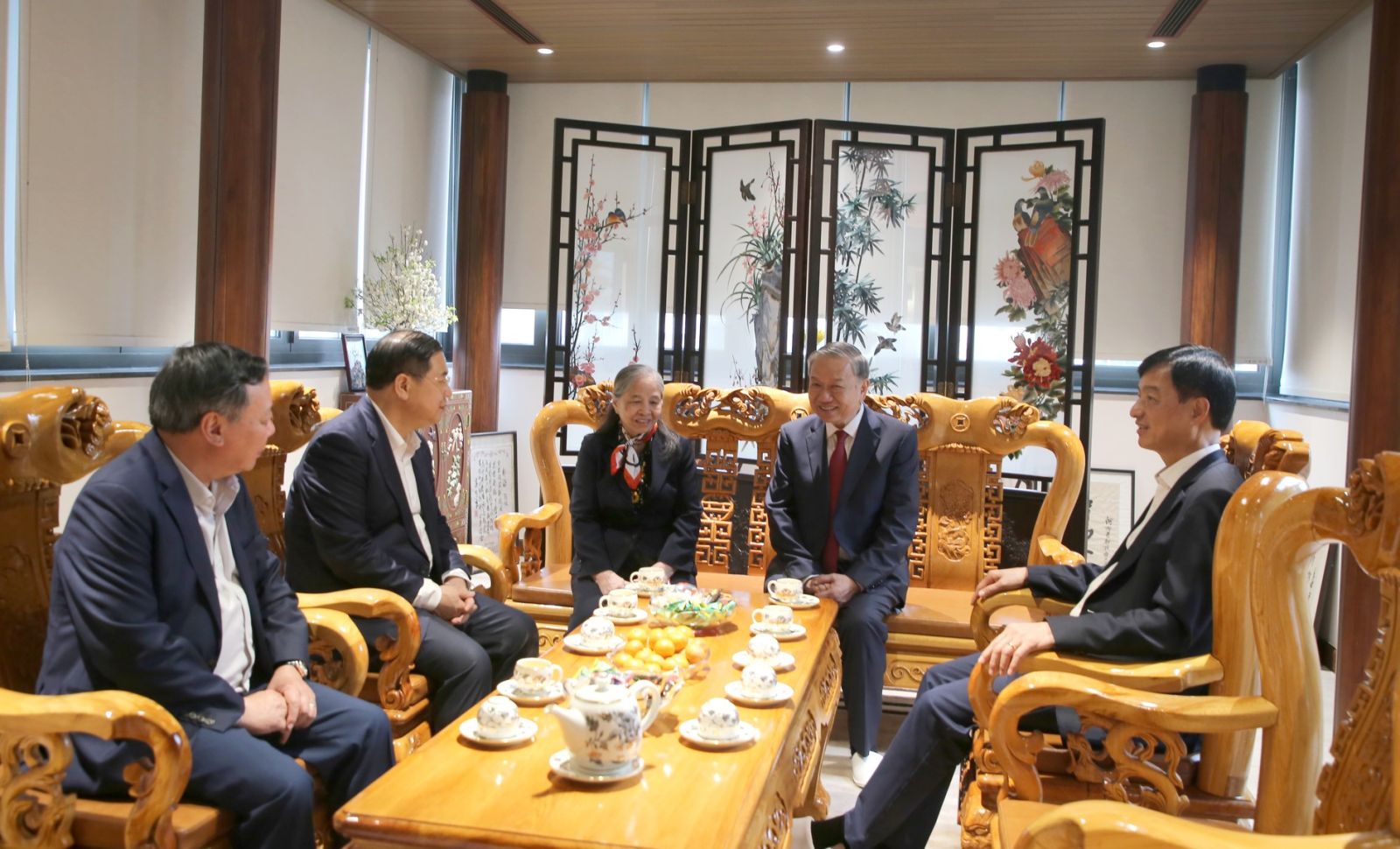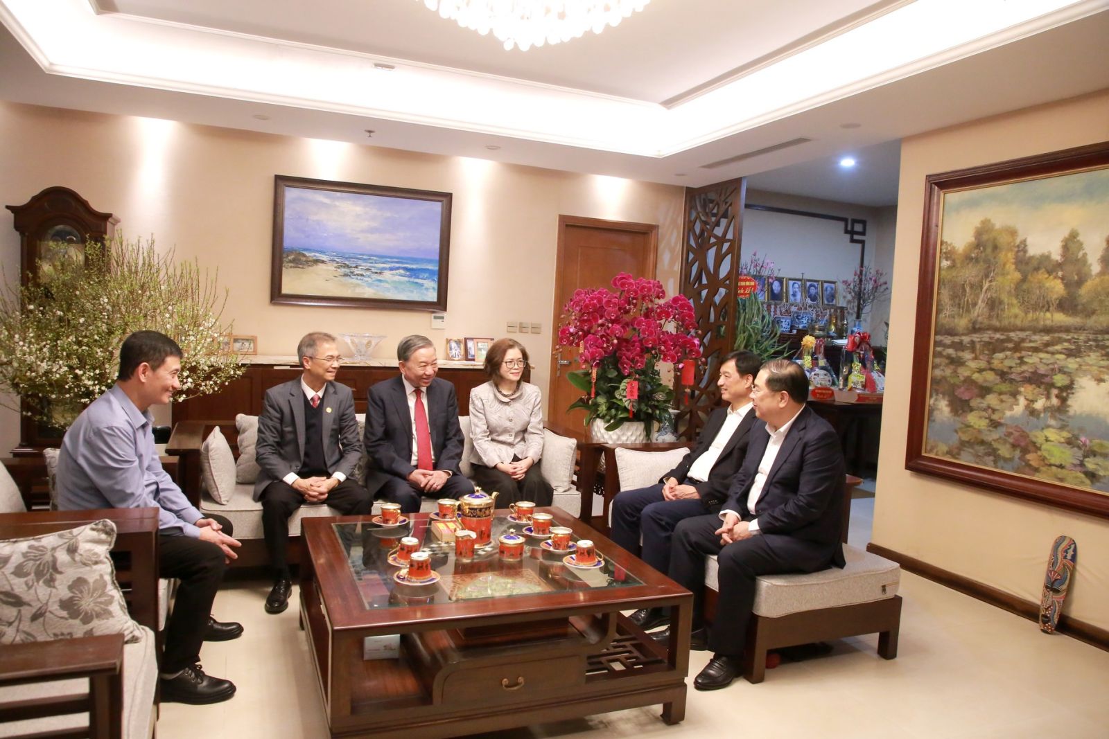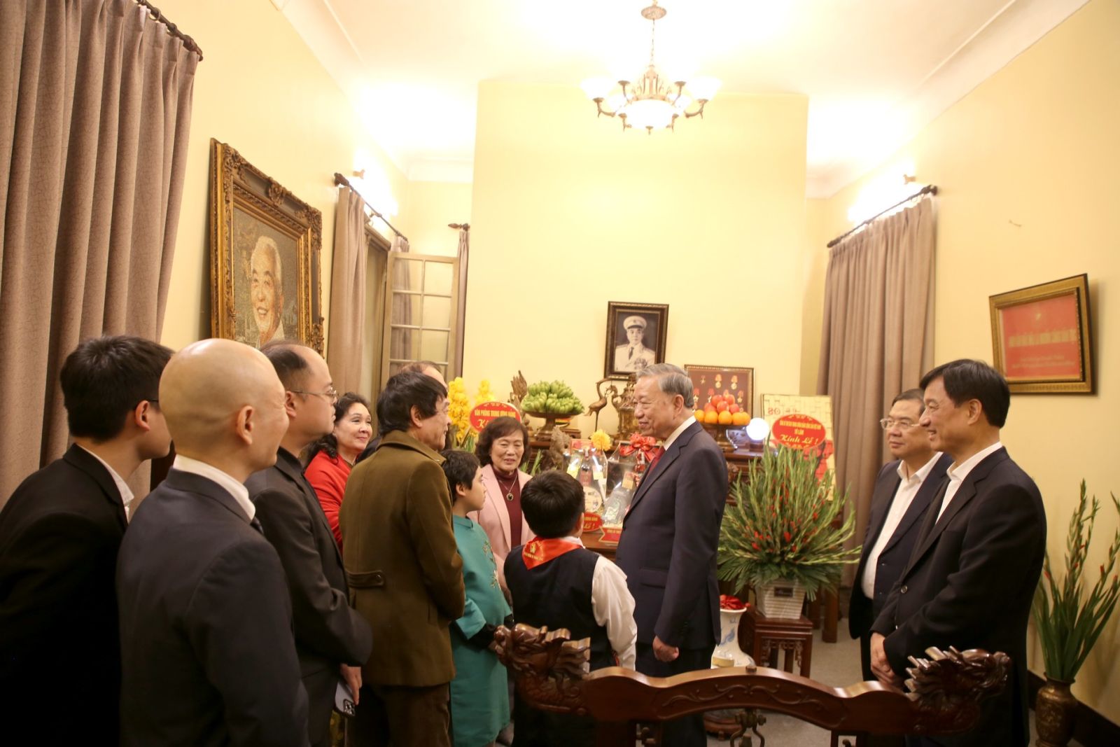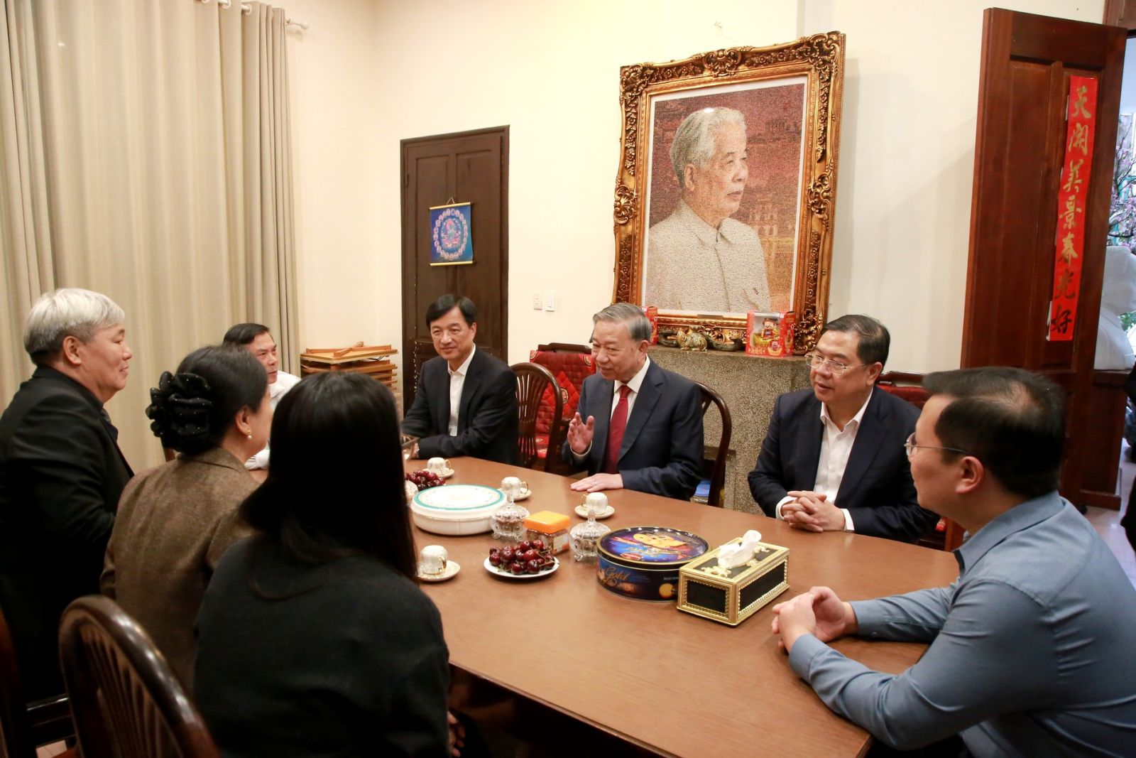 Trong không khí ấm áp của những ngày giáp Tết cổ truyền dân tộc, Tổng Bí thư Tô Lâm ân cần thăm hỏi tình hình đời sống, công tác của thân nhân gia đình các đồng chí Tổng Bí thư: Trường Chinh, Lê Duẩn, Đỗ Mười, Lê Khả Phiêu, Nguyễn Phú Trọng; mong muốn các gia đình tiếp tục phát huy truyền thống, không ngừng nỗ lực phấn đấu đạt nhiều thành tích trong công tác, tích cực đóng góp xây dựng đất nước.