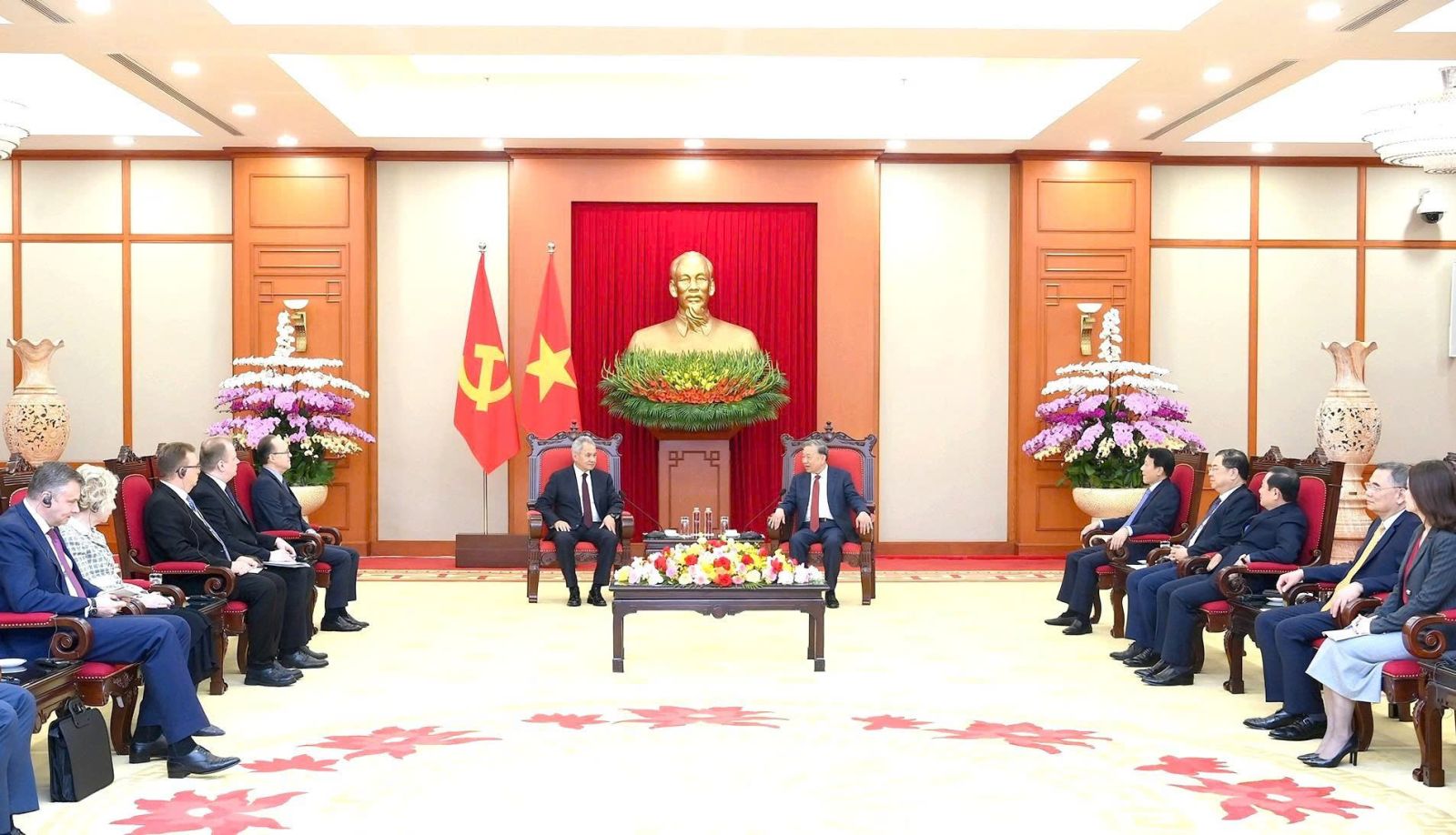 Tổng Bí thư Tô Lâm đánh giá cao kết quả trao đổi làm việc giữa Đoàn đại biểu Hội đồng An ninh Liên bang Nga với các cơ quan chức năng của Việt Nam; đồng thời ghi nhận những nội dung hợp tác thiết thực mà hai bên đã thống nhất, đặc biệt trong các lĩnh vực phòng, chống tội phạm xuyên quốc gia; phòng, chống khủng bố; bảo đảm an ninh mạng; an ninh phi truyền thống; trao đổi thông tin chiến lược và đào tạo bồi dưỡng cán bộ. Tổng Bí thư nhấn mạnh, trong bối cảnh tình hình thế giới diễn biến nhanh chóng và phức tạp, Việt Nam và Liên bang Nga càng cần tăng cường phối hợp, tham vấn và chia sẻ kinh nghiệm để hỗ trợ và bổ sung cho nhau vì an ninh, thịnh vượng của mỗi nước; Việt Nam sẵn sàng thúc đẩy và làm cầu nối, cửa ngõ để Liên bang Nga tăng cường hợp tác nhiều mặt với ASEAN và các nước thành viên ASEAN.