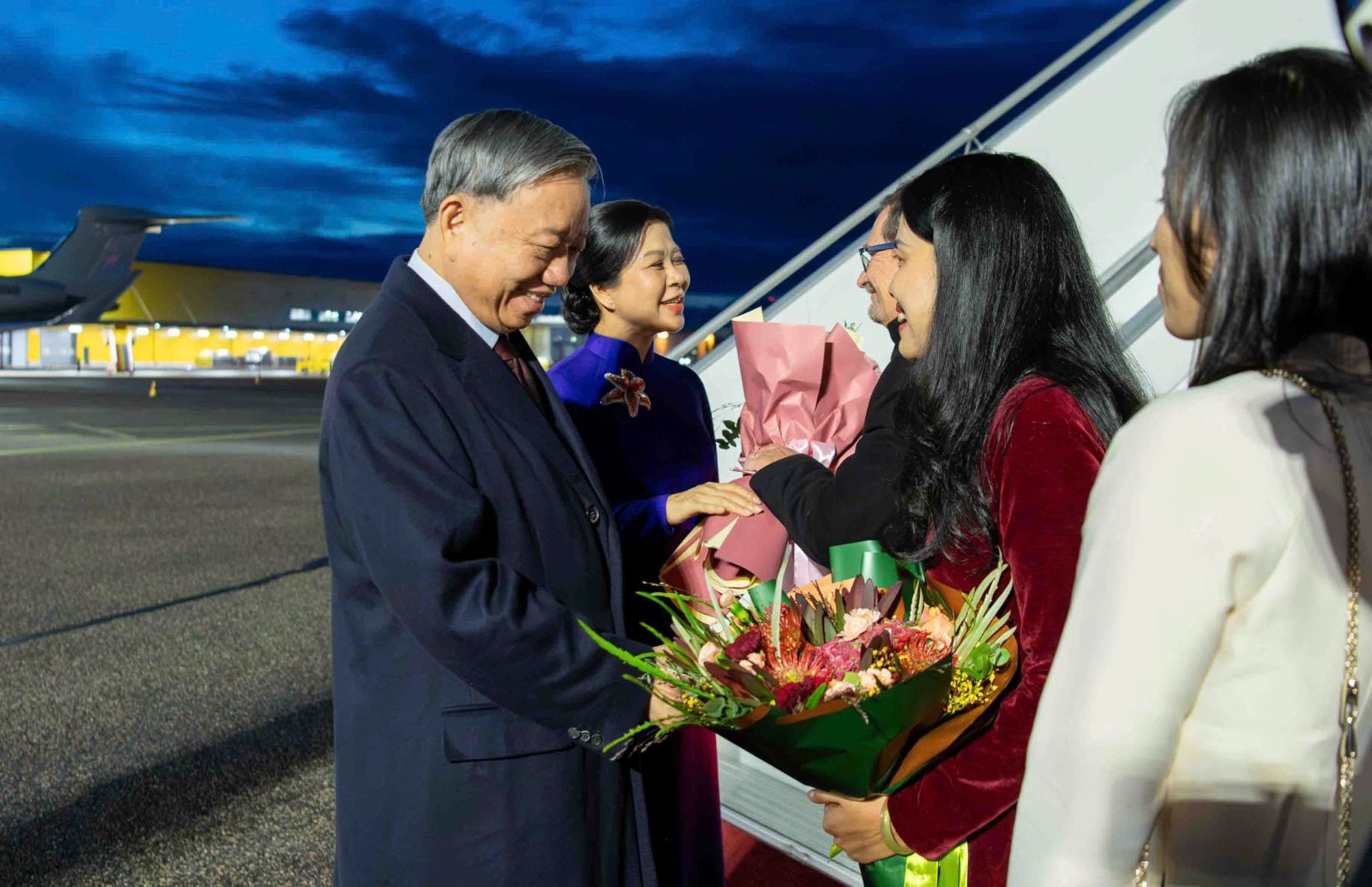 Sau chuyến bay kéo dài hơn 10 giờ, Tổng Bí thư Tô Lâm và Phu nhân cùng đoàn đại biểu cấp cao Việt Nam đã đến Phần Lan. Ông Mika Koskinen, Cục trưởng Cục Lễ tân Bộ Ngoại giao Phần Lan và ông Pekka Juhani Voutilaine, Đại sứ Phần Lan tại Việt Nam chào mừng Tổng Bí thư Tô Lâm và Phu nhân cùng đoàn đại biểu cấp cao Việt Nam thăm chính thức Phần Lan tại sân bay.