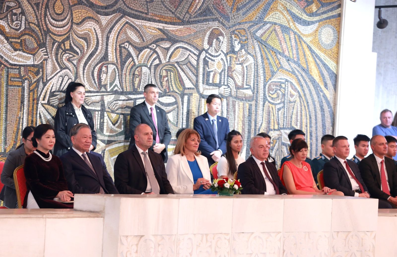 Sau khi thăm quan Bảo tàng Lịch sử Quốc gia Bulgaria, Tổng Bí thư Tô Lâm và Phu nhân cùng Tổng thống Cộng hòa Bulgaria Rumen Radev và Phu nhân đã xem biểu diễn nghệ thuật với sự góp mặt của Đoàn Nghệ thuật "Trakia" nổi tiếng của Bulgaria cùng các nghệ sĩ của Việt Nam.
