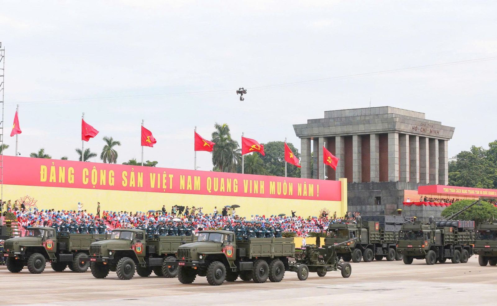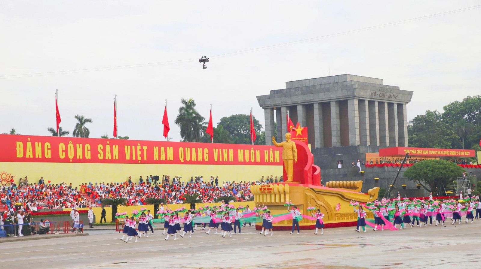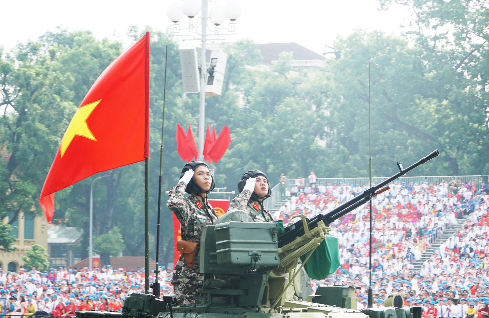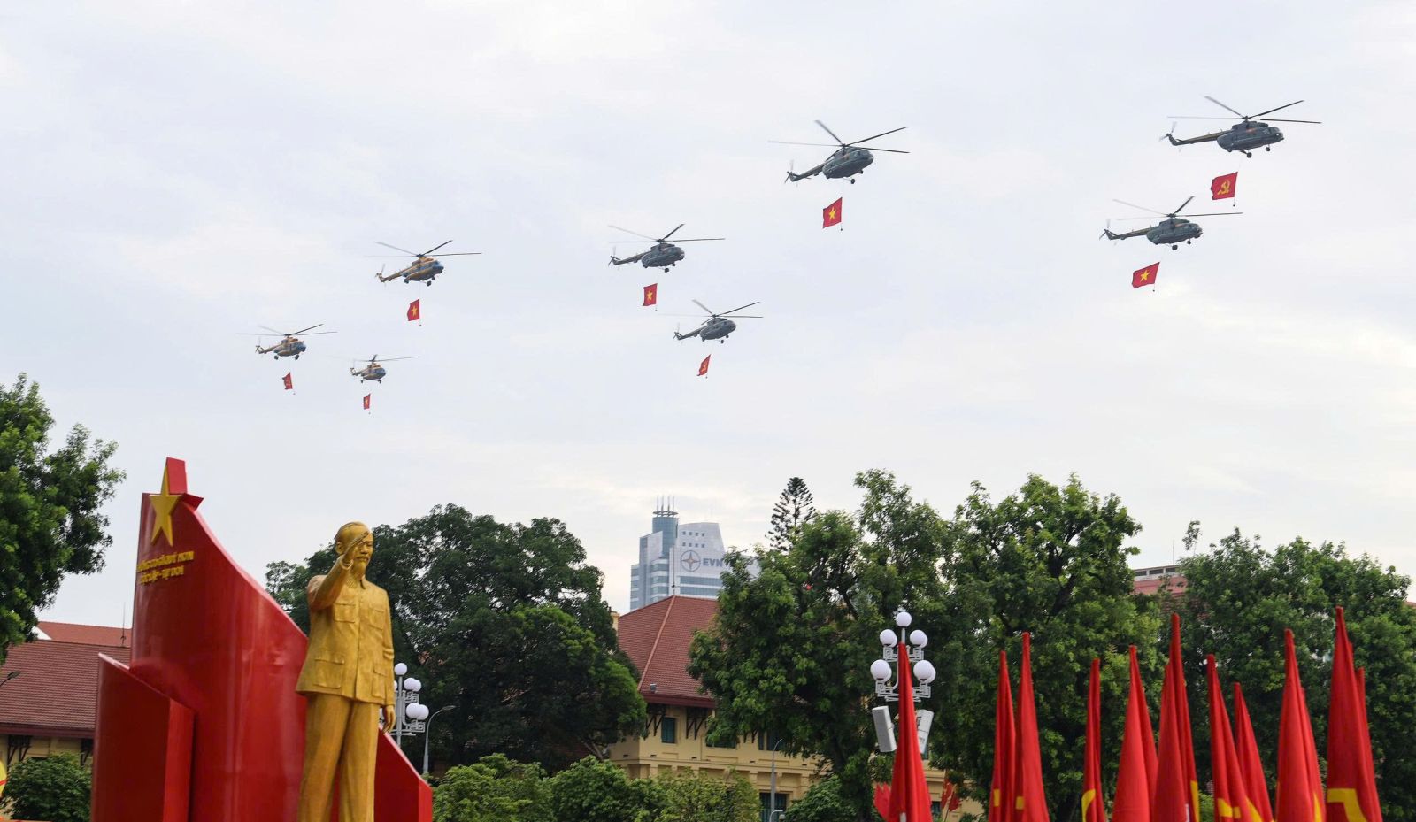 Mở đầu cuộc diễu binh, diễu hành là các Biên đội của Không quân nhân dân Việt Nam anh hùng đang bay trên bầu trời Tổ quốc. Dẫn đầu là biên đội trực thăng Mi-171, Mi-17, Mi-8, mang cờ Đảng, cờ Tổ quốc tung bay trên Quảng trường Ba Đình lịch sử. Đồng thời, từ Sân vận động quốc gia Mỹ Đình, cán bộ, chiến sĩ Lữ đoàn Pháo binh 45 thuộc Bộ Tư lệnh Pháo binh - Tên lửa đã khai hỏa 21 phát đại bác rền vang, báo hiệu buổi tổng duyệt bắt đầu.