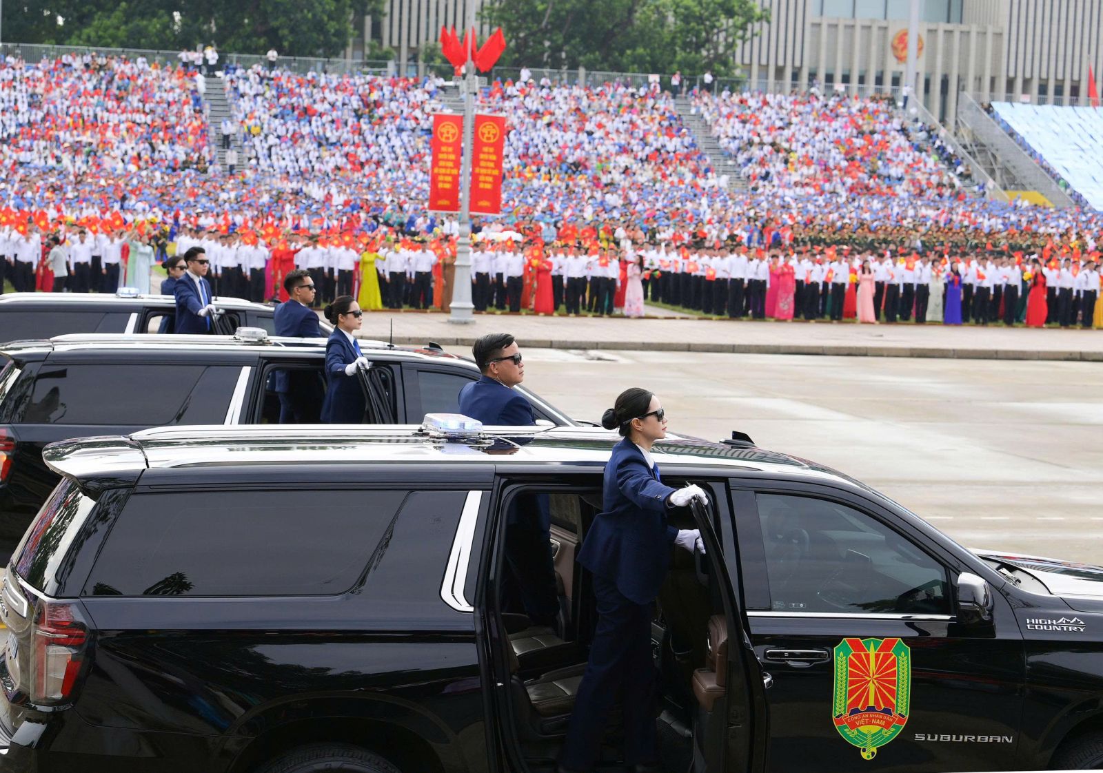 Dự tổng duyệt có các đồng chí Ủy viên Bộ Chính trị: Thủ tướng Chính phủ Phạm Minh Chính; Thường trực Ban Bí thư Trần Cẩm Tú - Trưởng Ban Chỉ đạo Trung ương kỷ niệm các ngày lễ lớn và sự kiện lịch sử quan trọng của đất nước; Phó Thủ tướng Thường trực Chính phủ Nguyễn Hoà Bình; Bí thư Trung ương Đảng, Trưởng Ban Tuyên giáo và Dân vận Trung ương Nguyễn Trọng Nghĩa - Phó Trưởng Ban Thường trực Ban Chỉ đạo Trung ương kỷ niệm các ngày lễ lớn và sự kiện lịch sử quan trọng của đất nước; Phó Bí thư Quân ủy Trung ương, Bộ trưởng Bộ Quốc phòng, Đại tướng Phan Văn Giang; Bí thư Đảng ủy Công an Trung ương, Bộ trưởng Bộ Công an, Đại tướng Lương Tam Quang; Bí thư Thành ủy Hà Nội Bùi Thị Minh Hoài - Phó Trưởng Ban Chỉ đạo Trung ương kỷ niệm các ngày lễ lớn và sự kiện lịch sử quan trọng của đất nước.