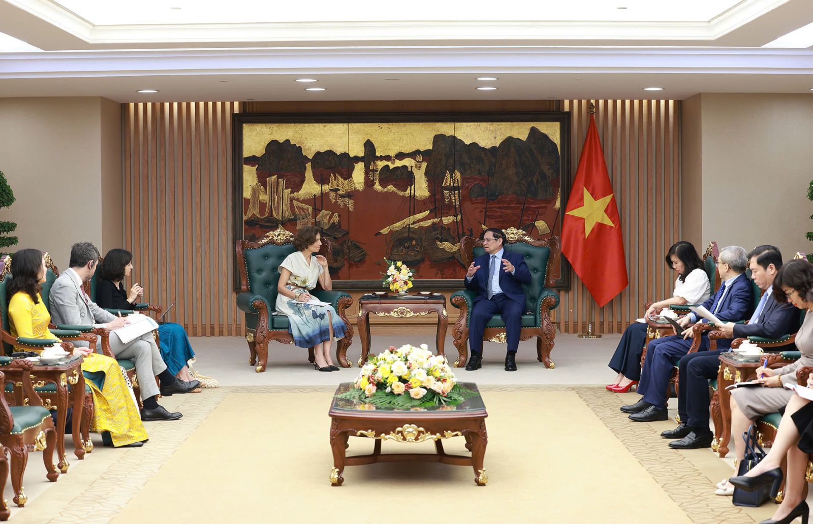Tại buổi tiếp, Thủ tướng Phạm Minh Chính nhiệt liệt chào mừng bà Audrey Azoulay trở lại Việt Nam và bày tỏ sự ghi nhận những đóng góp quan trọng của bà cho UNESCO và cho văn minh nhân loại trong suốt 2 nhiệm kỳ vừa qua.