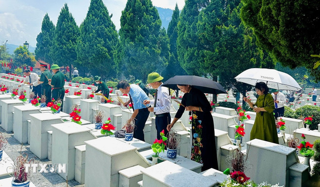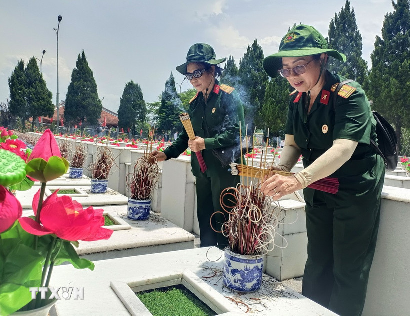 Từ mọi miền Tổ quốc, thân nhân liệt sỹ, cựu chiến binh, cán bộ, chiến sỹ và đông đảo người dân về đây để thắp nén tâm hương, cúi đầu tưởng niệm những anh hùng liệt sỹ đã ngã xuống vì đất nước.
