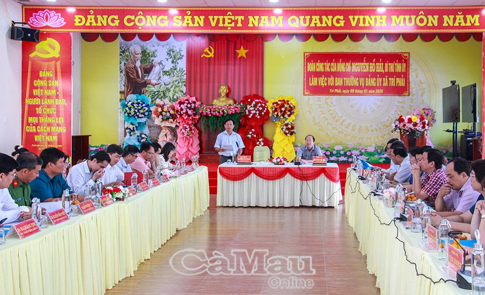 Phát biểu kết luận, Bí thư Tỉnh uỷ Nguyễn Hồ Hải ghi nhận và biểu dương những nỗ lực của Đảng bộ, chính quyền xã Trí Phải trong việc nhanh chóng ổn định tổ chức bộ máy, vận hành hiệu quả mô hình chính quyền địa phương 2 cấp. Kinh tế địa phương tiếp tục tăng trưởng; tổng sản lượng thuỷ sản đạt hơn 12.900 tấn, trong đó sản lượng tôm tăng trên 22% so với cùng kỳ. Xã có 3 sản phẩm OCOP đạt chuẩn 3 sao, góp phần nâng cao giá trị nông sản.